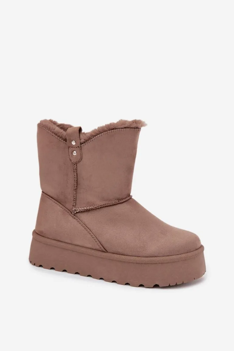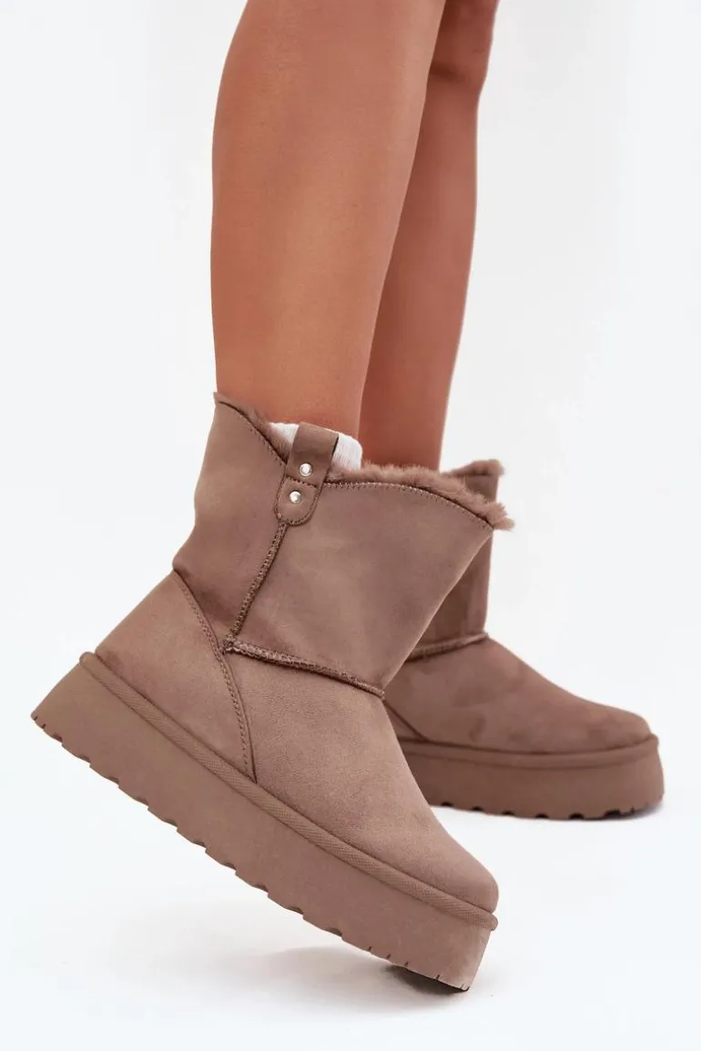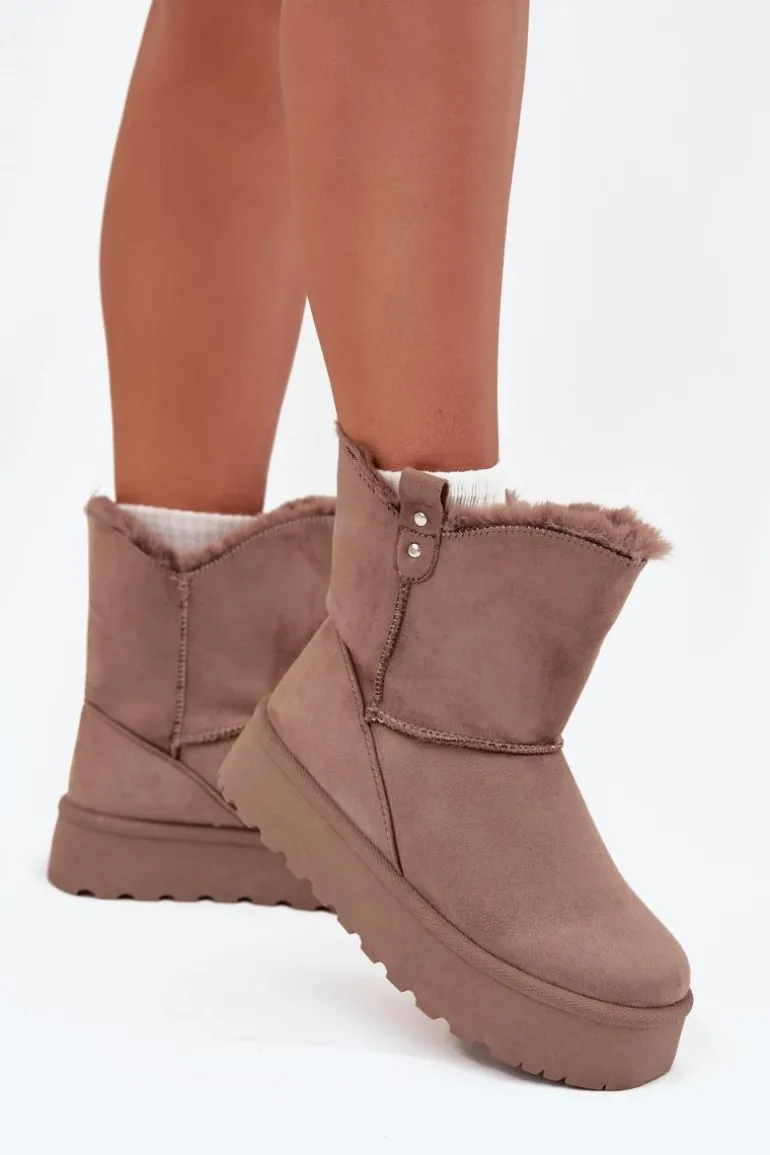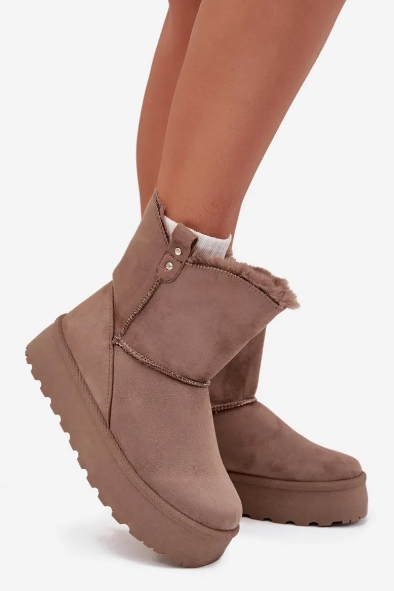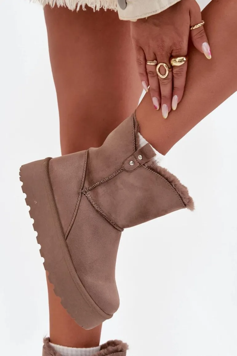 Śniegowce damskie wykonane z eko zamszu. Stylowy fason osadzony na platformie. Ocieplenie futerkiem zapewnia ciepło i komfort nawet w mroźne dni. Doskonałe na chłodne zimowe spacery, te śniegowce będą świetnym akcentem w każdej zimowej stylizacji. Przy wyborze rozmiaru prosimy sugerować się tabelą rozmiarów.