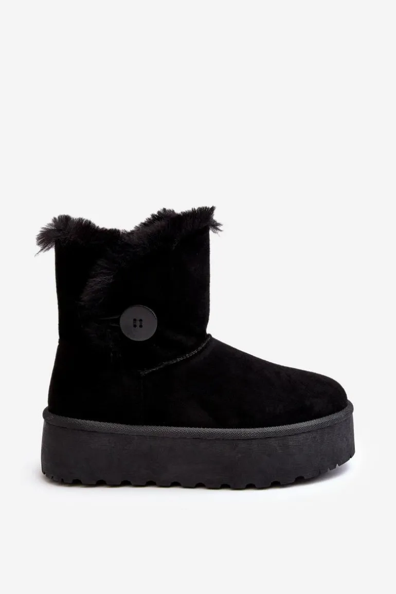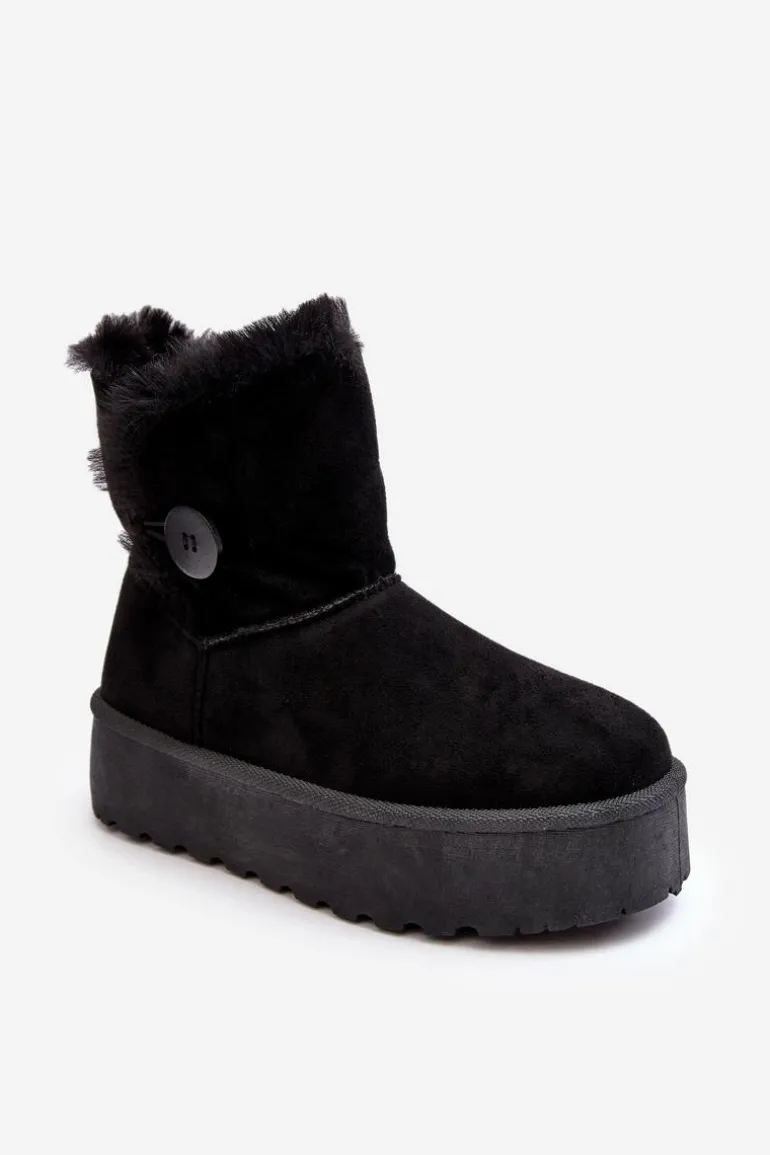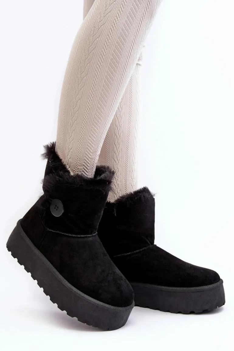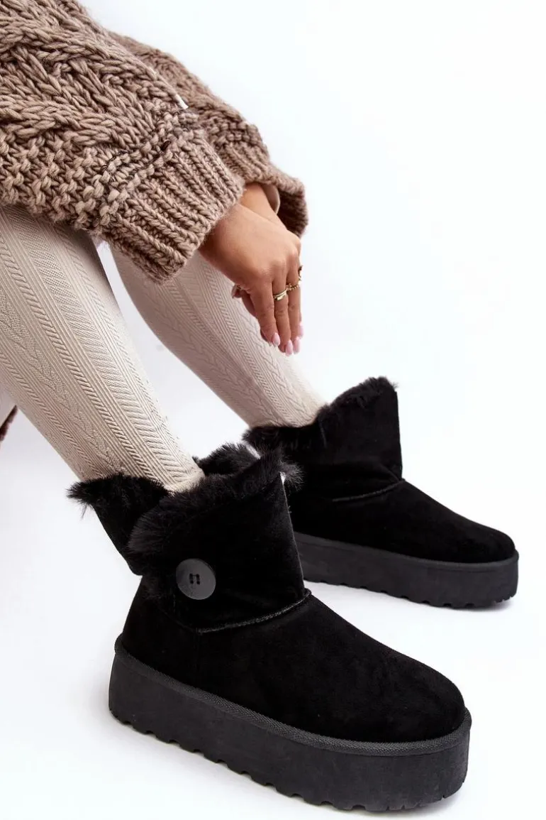Śniegowce damskie osadzone na grubej platformie z gumowego tworzywa. Cholewka za kostkę, ozdobiona guzikiem i futerkiem. Wykonane z eko zamszu. Środek ocieplony. Ten modny model świetnie sprawdzi się w sezonie jesienno-zimowym. Koniecznie musisz je mieć! Przy wyborze rozmiaru prosimy sugerować się tabelą rozmiarów.