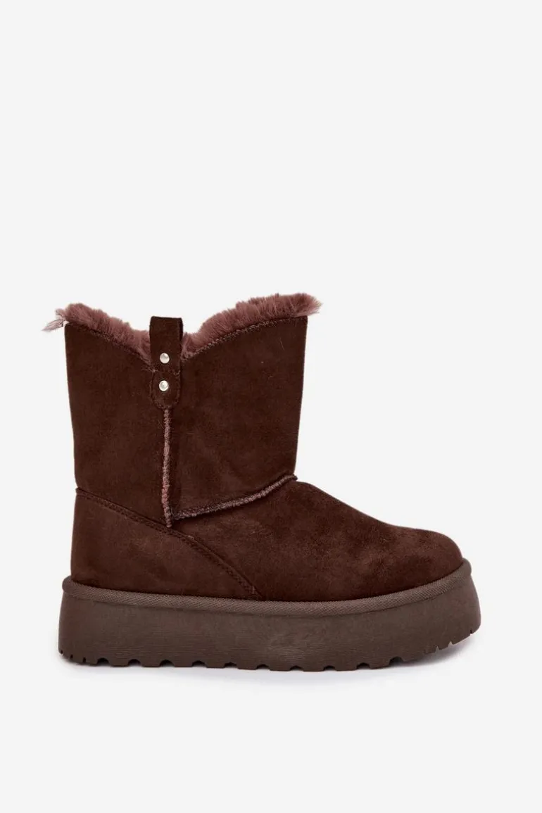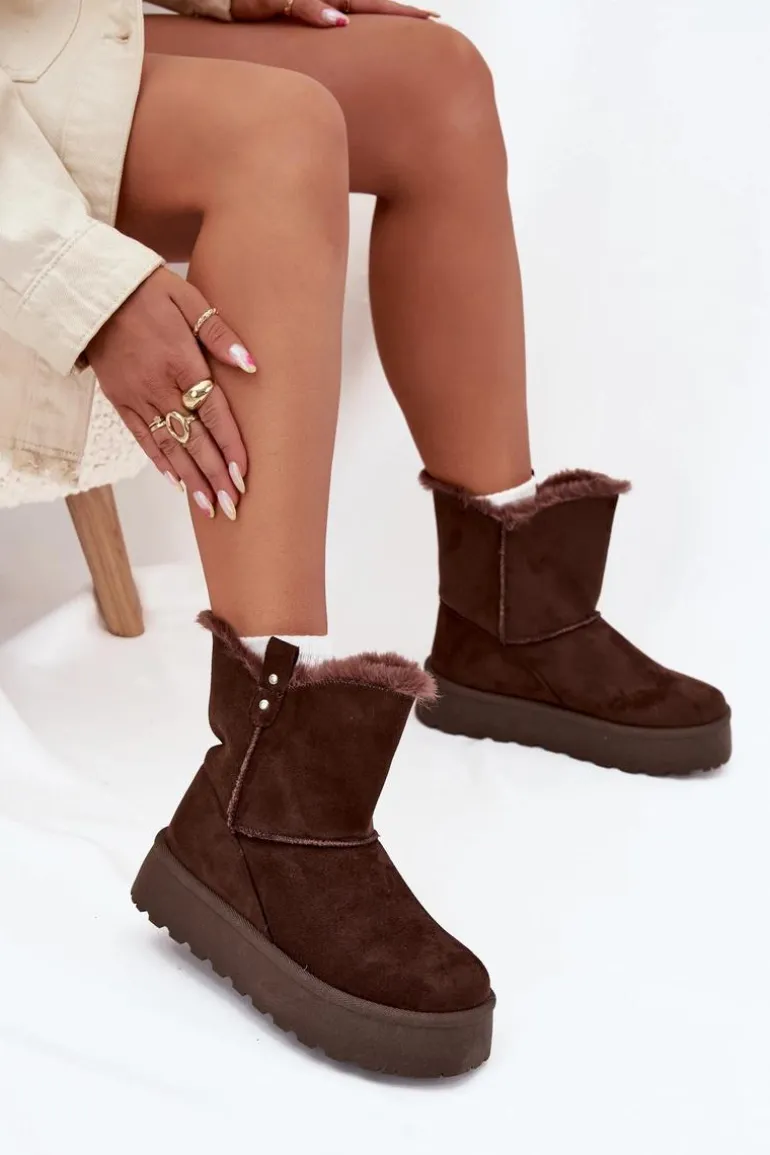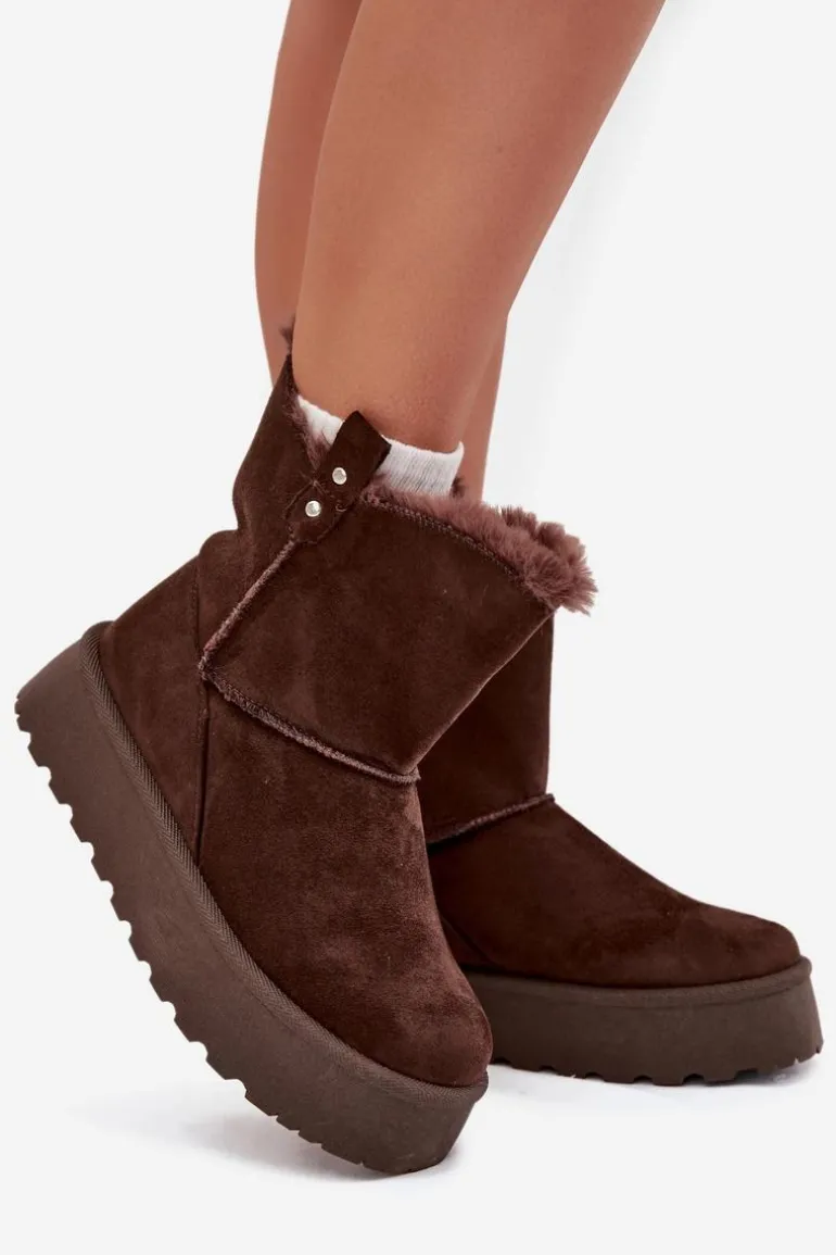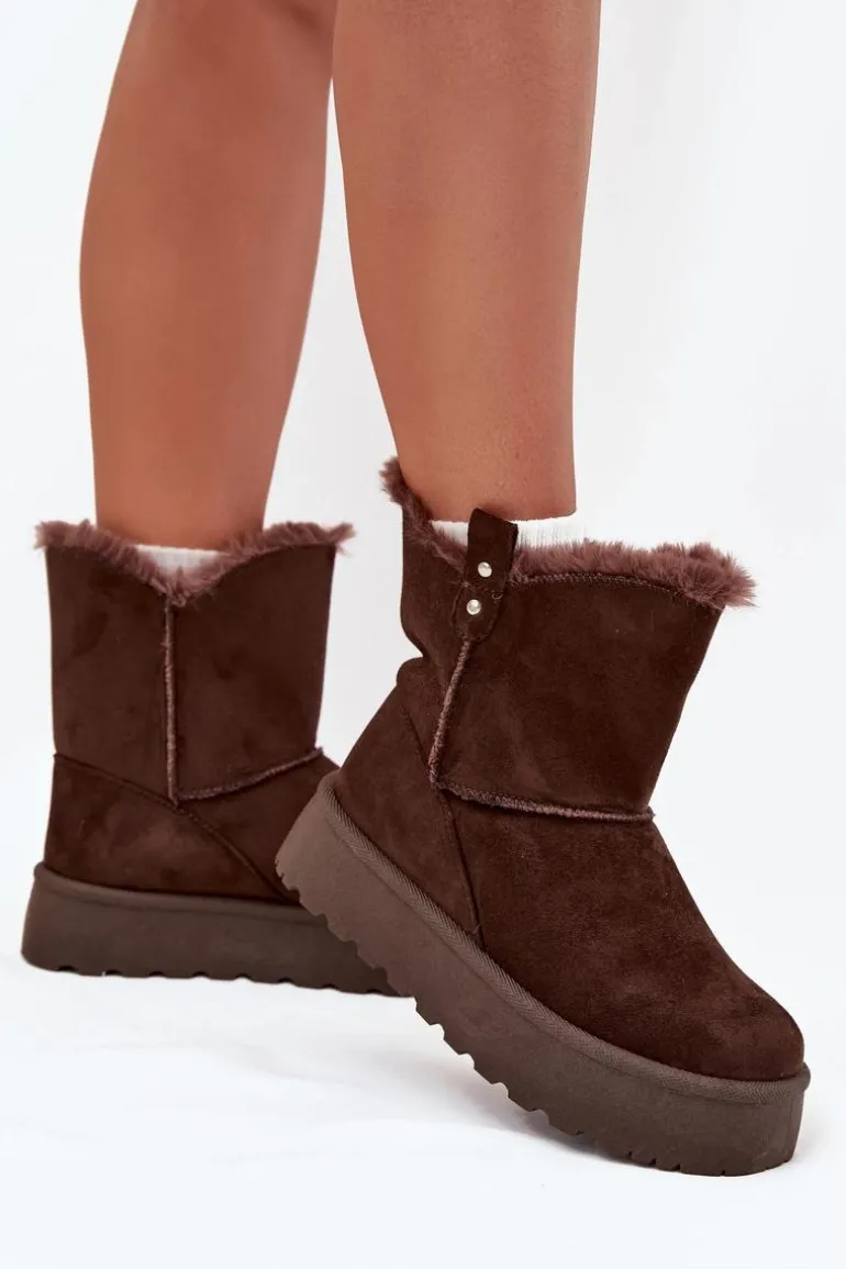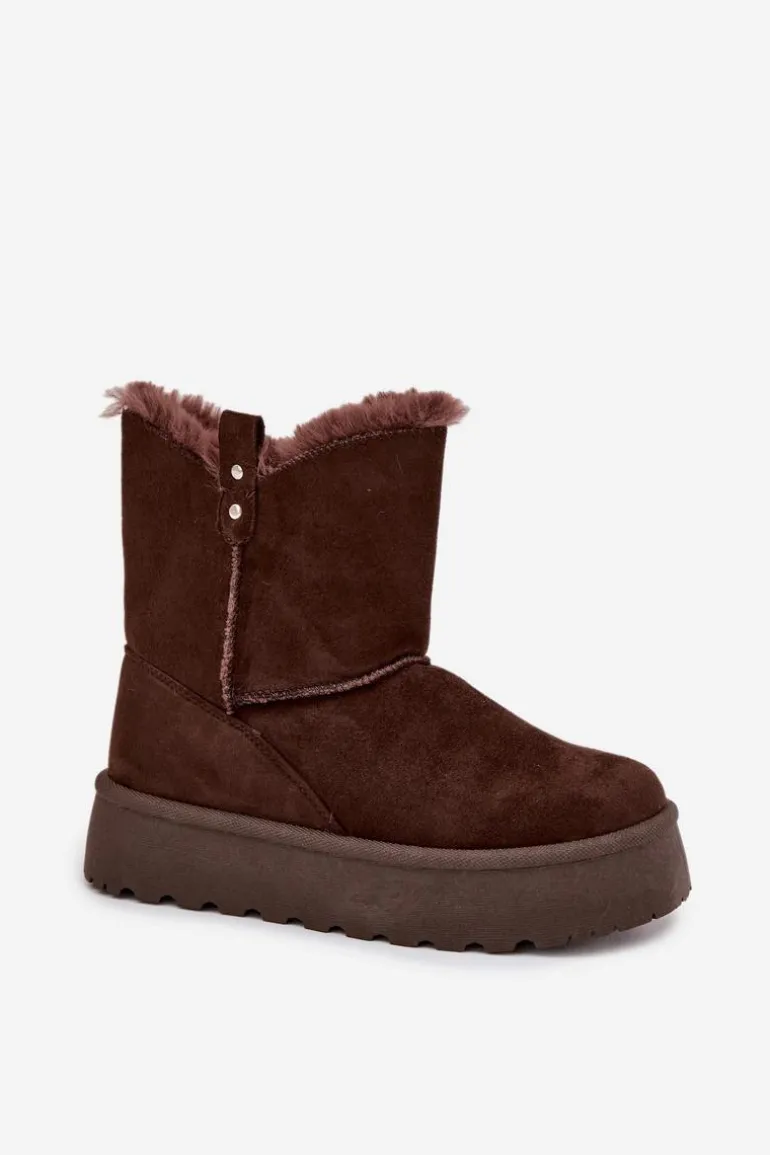 Śniegowce damskie wykonane z eko zamszu. Stylowy fason osadzony na platformie. Ocieplenie futerkiem zapewnia ciepło i komfort nawet w mroźne dni. Doskonałe na chłodne zimowe spacery, te śniegowce będą świetnym akcentem w każdej zimowej stylizacji. Przy wyborze rozmiaru prosimy sugerować się tabelą rozmiarów.