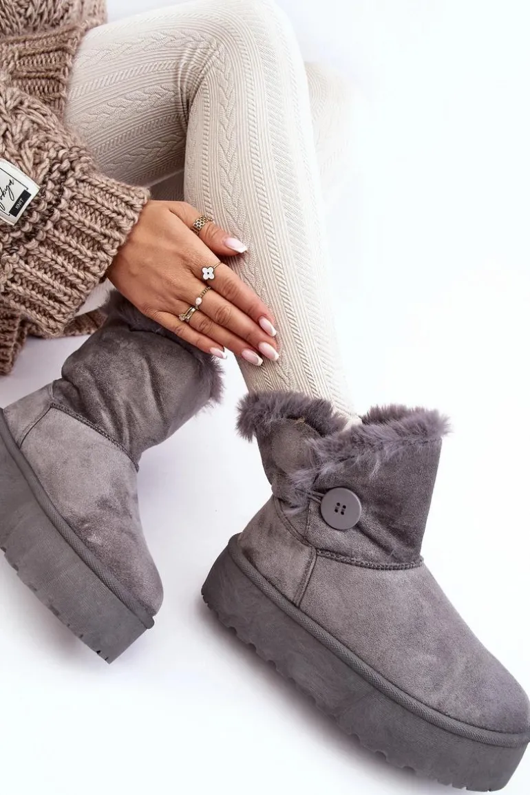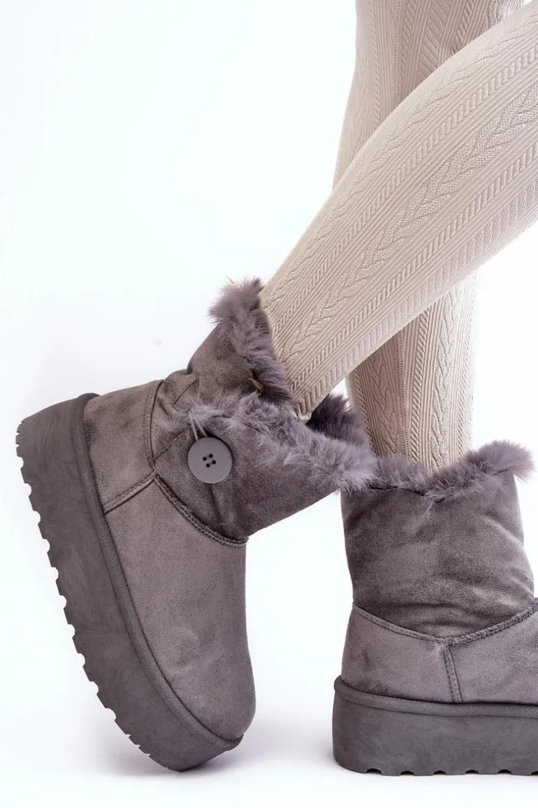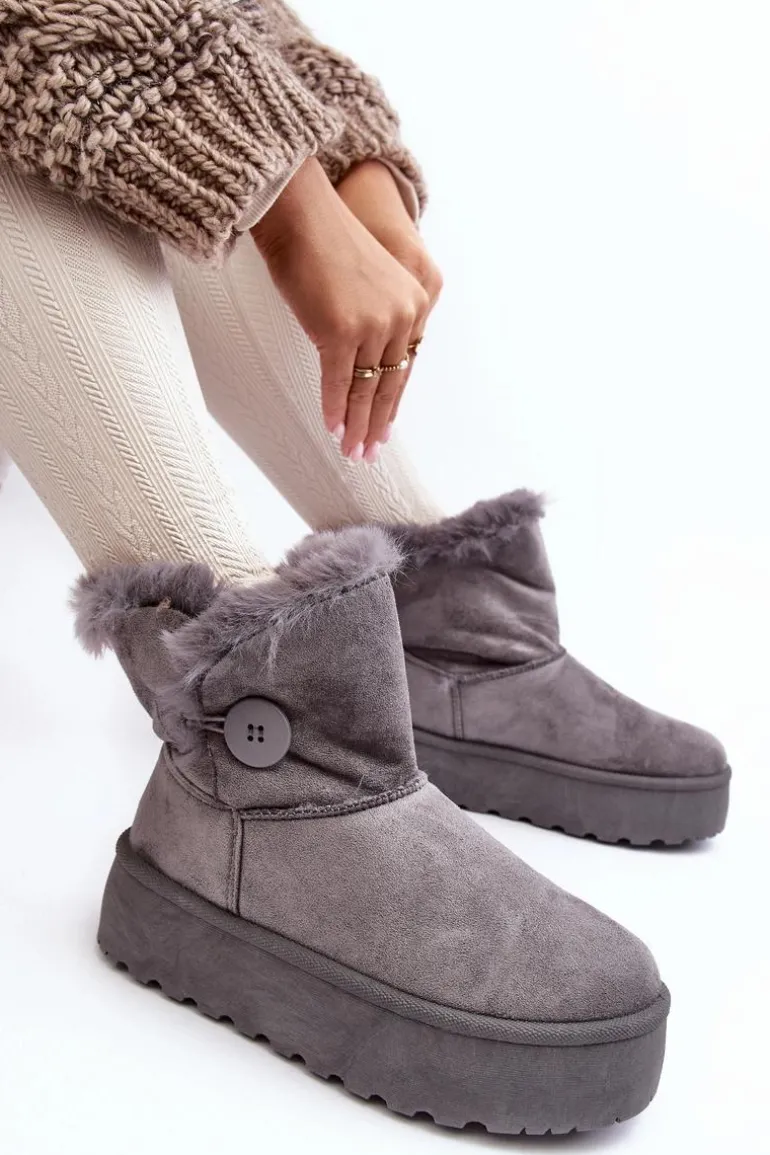 Damskie Śniegowce Na Platformie Z Futerkiem Szare Wikasem