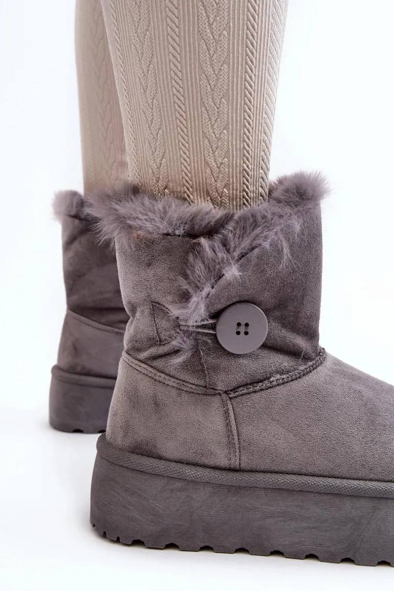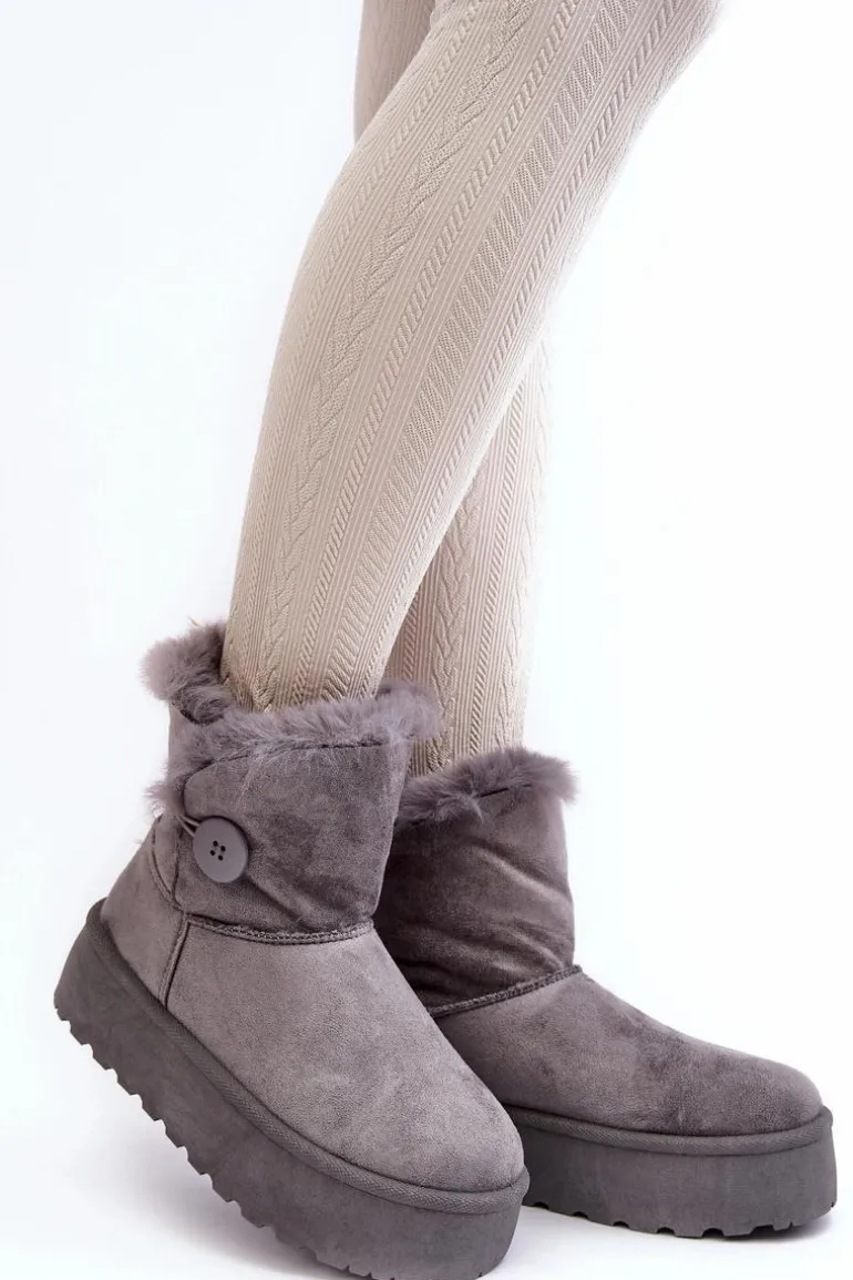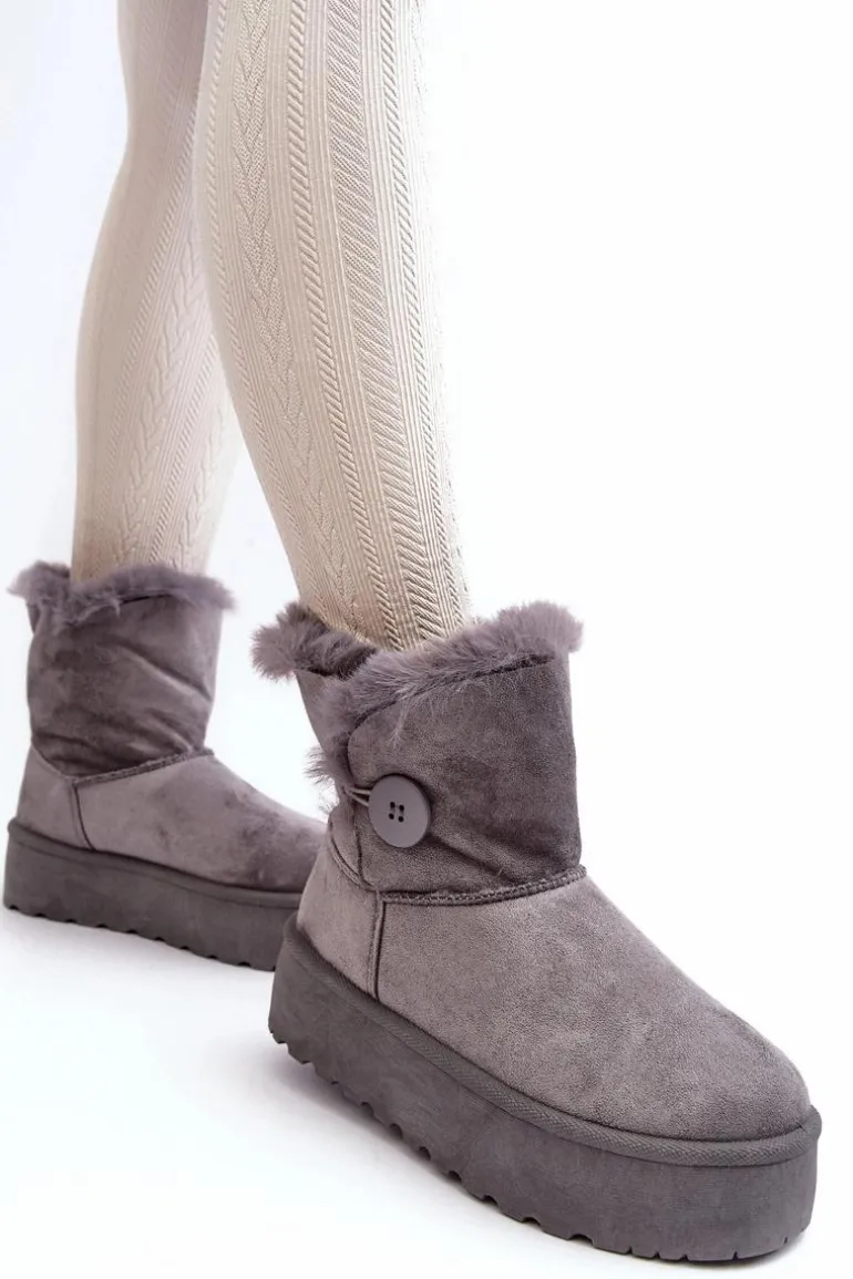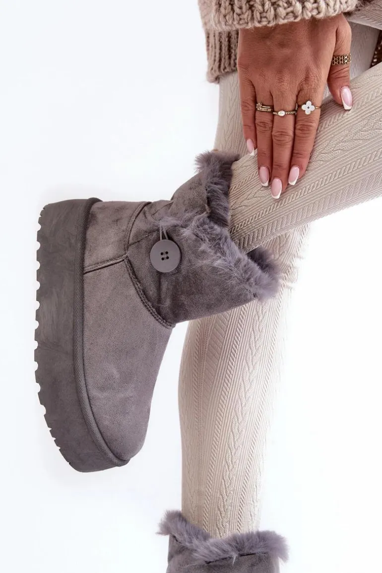 Damskie Śniegowce Na Platformie Z Futerkiem Szare Wikasem