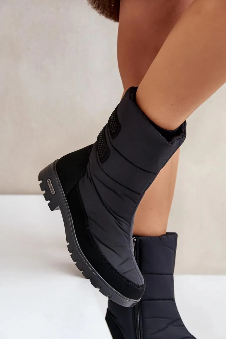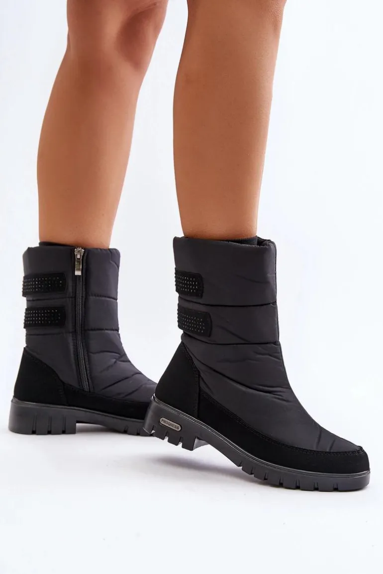Lekkie i wygodne śniegowce damskie. Osadzone na płaskim obcasie. Zapinane na zamek. Ocieplane grubym futerkiem wewnątrz, doskonale ochroni przed zimnem, zapewniając ciepło nawet w najchłodniejsze dni. Świetnie sprawdzą się podczas codziennego użytkowania w zimowe dni. Przy wyborze rozmiaru, prosimy sugerować się tabelą rozmiarów.