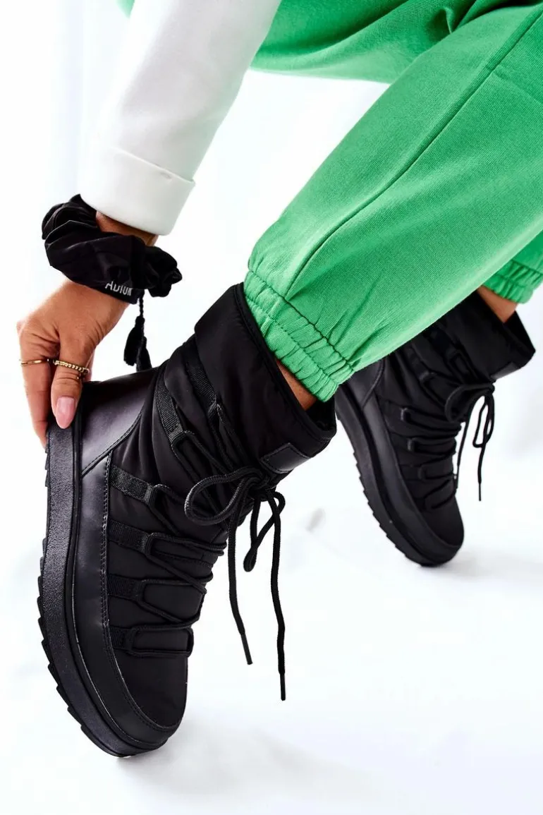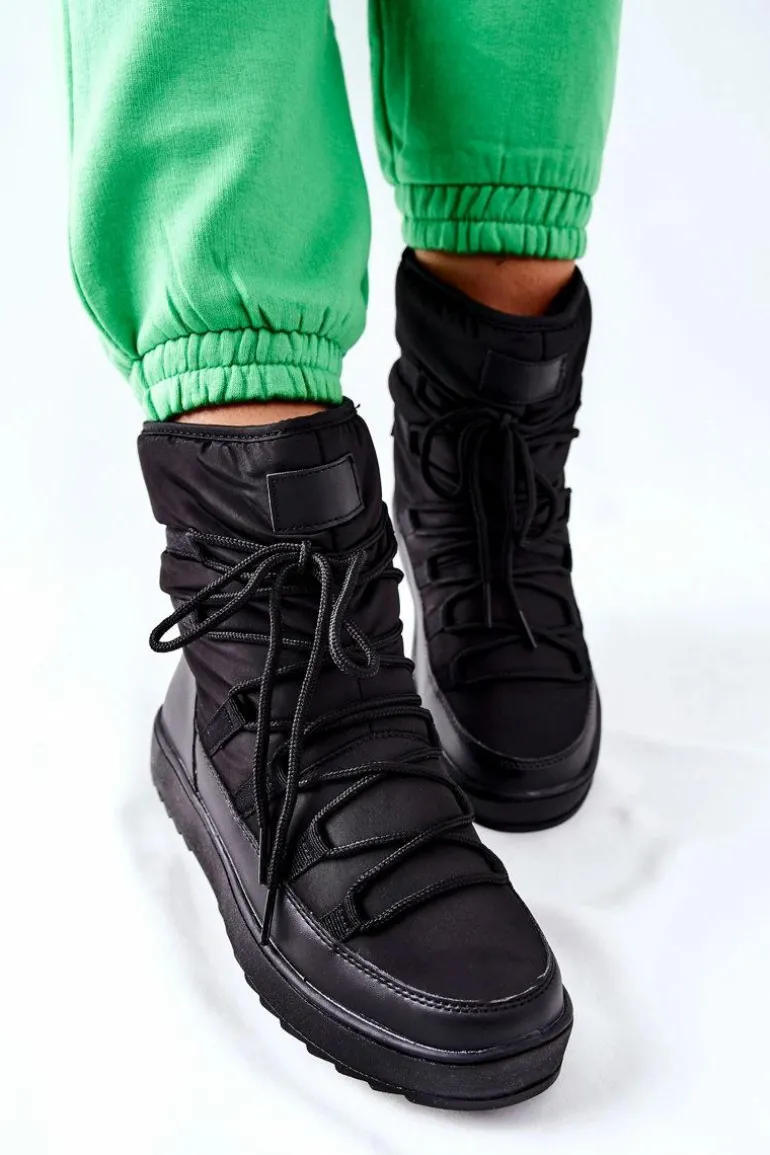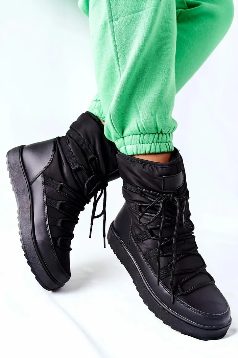 Buty wewnątrz są niesamowicie miłe w dotyku dzięki zastosowaniu ocieplenia w postaci kożuszka. Zewnętrzna część buta została wykonana z materiału tekstylnego. Solidne sznurowanie zapewni idealne dopasowanie się buta do nogi. W tych śniegowcach żadna pogoda nie będzie Ci straszna! Przy wyborze rozmiaru prosimy kierować tabelą rozmiarów.