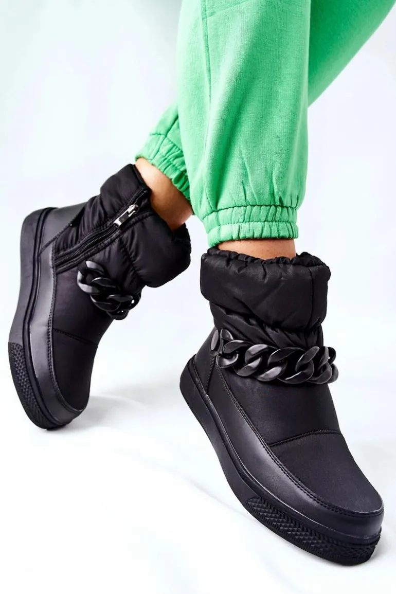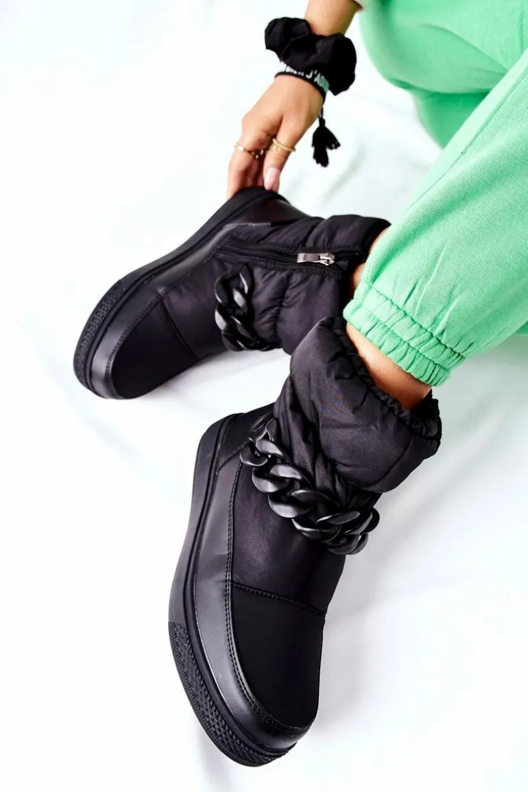 Buty wewnątrz są niesamowicie miłe w dotyku dzięki zastosowaniu ocieplenia w postaci kożuszka. Zewnętrzna część buta została wykonana z materiału tekstylnego. Buty zapinane na zamek. W tych śniegowcach żadna pogoda nie będzie Ci straszna! Przy wyborze rozmiaru prosimy kierować tabelą rozmiarów.