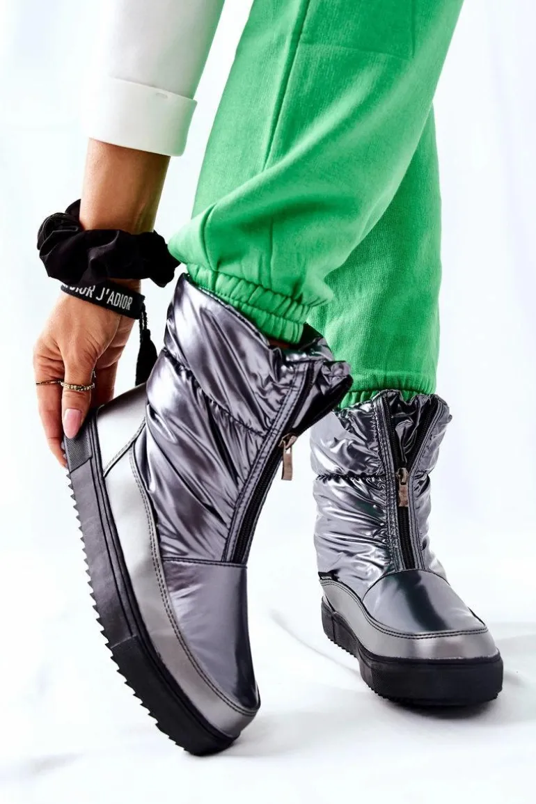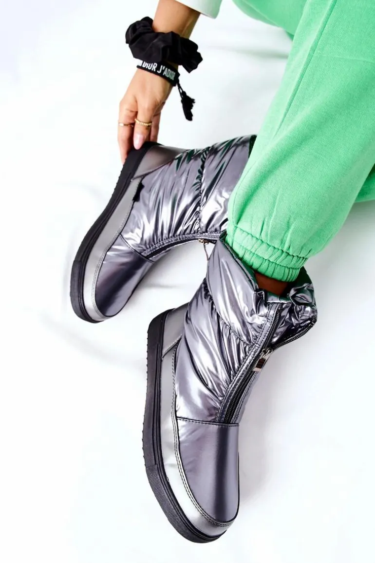 Buty wewnątrz są niesamowicie miłe w dotyku dzięki zastosowaniu ocieplenia w postaci kożuszka. Zewnętrzna część buta została wykonana z materiału tekstylnego. Buty zapinane na zamek. W tych śniegowcach żadna pogoda nie będzie Ci straszna! Przy wyborze rozmiaru prosimy kierować tabelą rozmiarów.