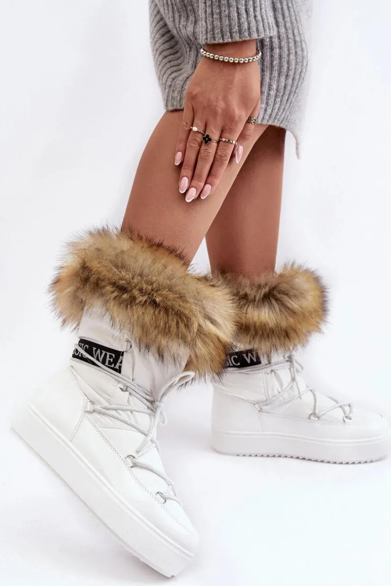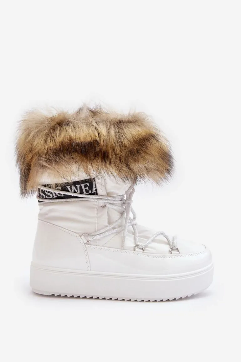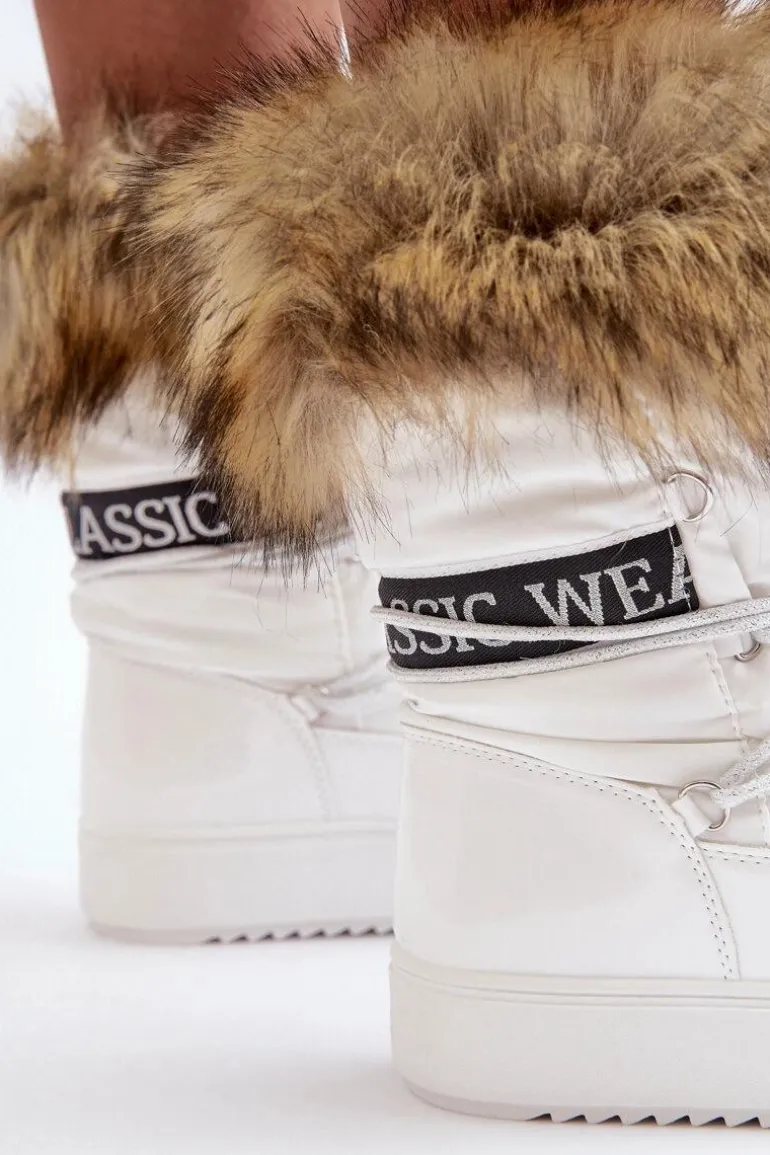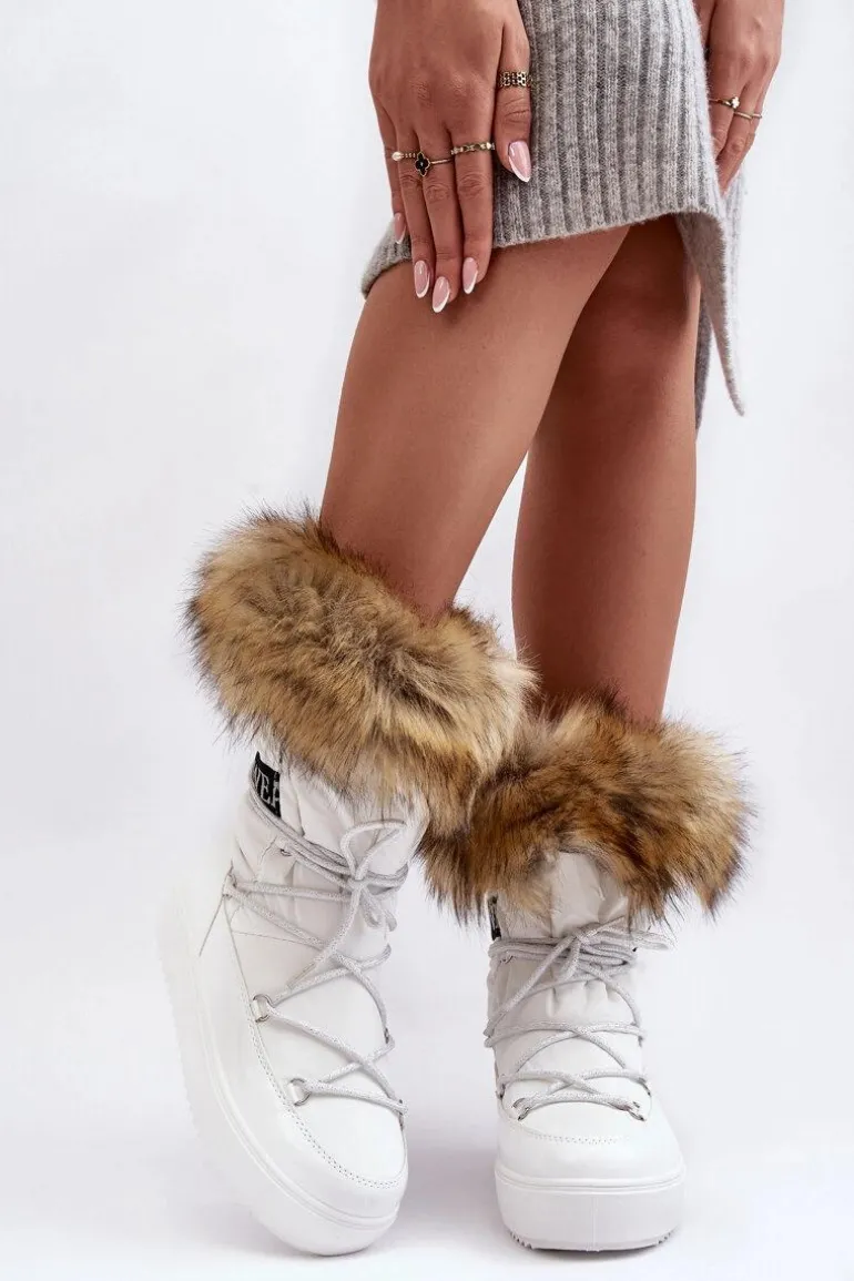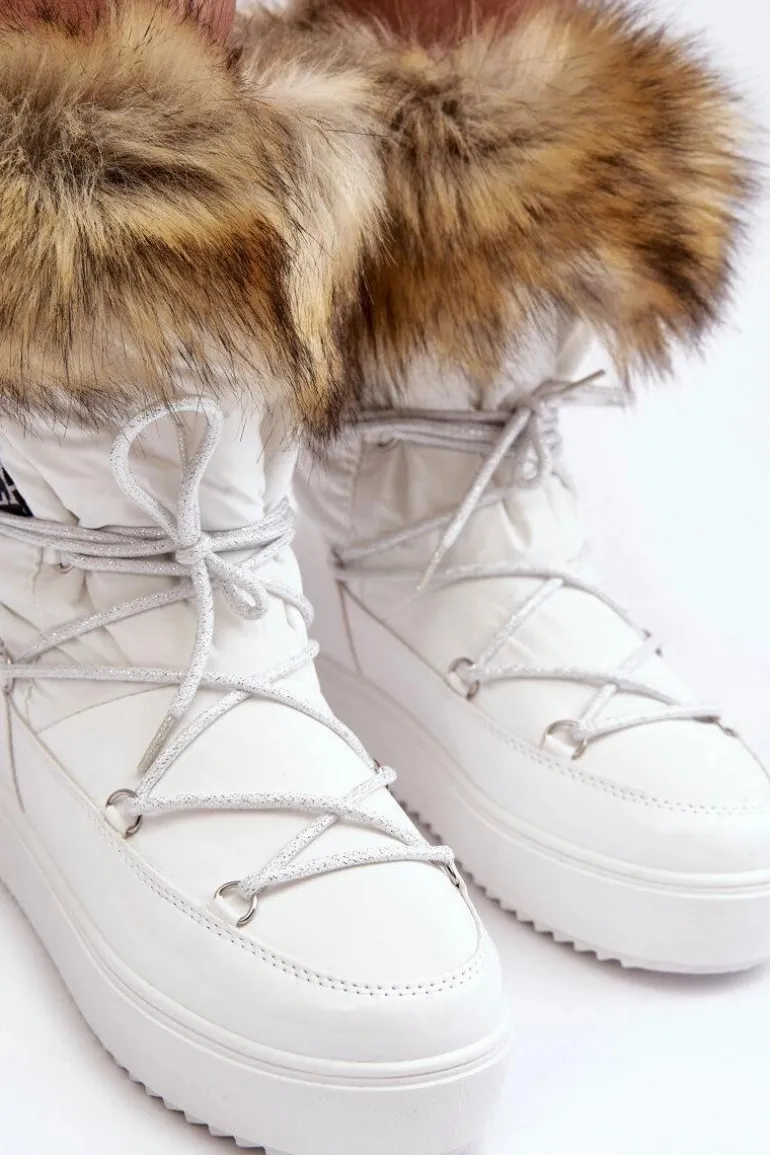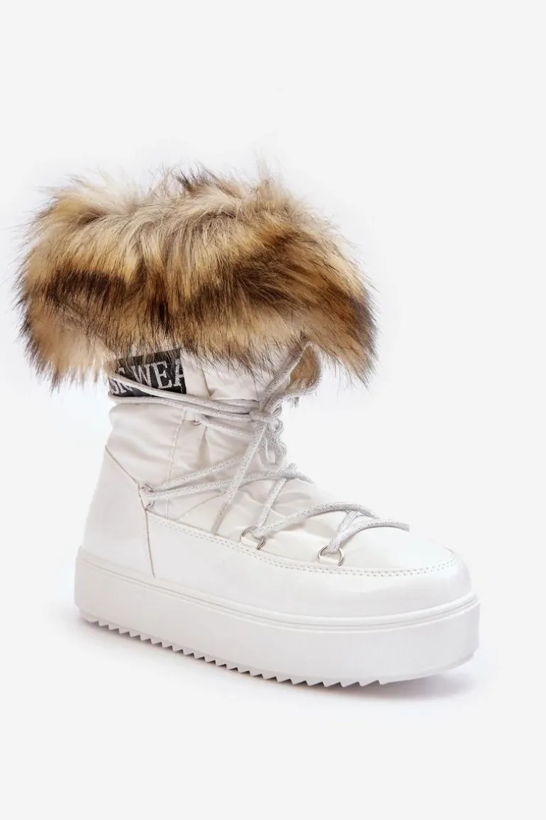Damskie Śniegowce Sznurowane Białe Santero