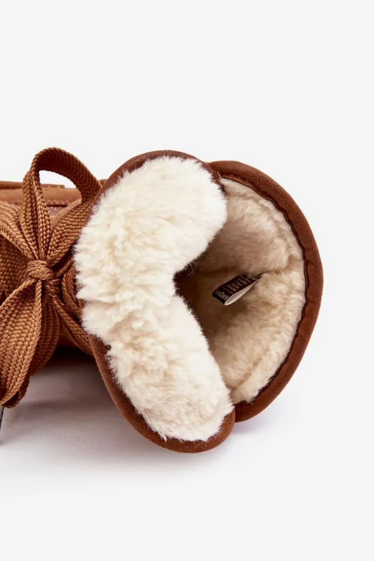 Śniegowce damskie wykonane z wysokiej jakości tkaniny z mikrofibry. Przód butów został ozdobiony połyskującym detalem, co nadaje im stylowego charakteru. Dodatkowym atutem jest fakt, że są wykonane z materiałów wegańskich. Środek ocieplony syntetycznym futerkiem. Model ten posiada grube sznurowadła. Modne i funkcjonalne obuwie, które z pewnością wyróżni się w Twojej kolekcji! Przy wyborze rozmiaru prosimy sugerować się tabelą rozmiarów.