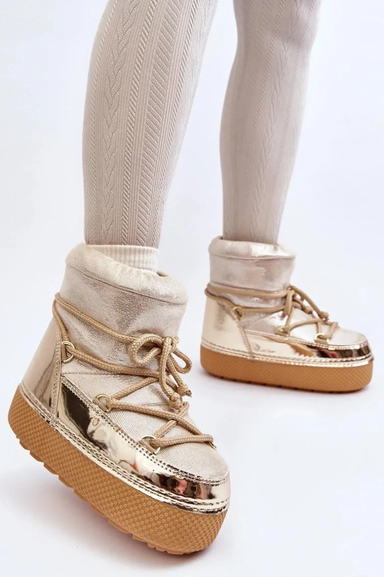 Te niezwykle przytulne i komfortowe damskie śniegowce zostały starannie stworzone z materiałów, które skutecznie chronią przed zimnem. Bezproblemowe wsuwanie tych śniegowców ułatwia szybką i wygodną zmianę obuwia, a dodatkowe sznurowanie z przodu gwarantuje idealne dopasowanie do Twojej stopy. Model ten, osadzony jest na masywnej platformie, która zapewnia stabilność i pewność kroków, nawet na śliskiej nawierzchni. Wnętrze śniegowców zostało starannie wyłożone miękką pianką oraz delikatnym materiałem. Przy wyborze rozmiaru prosimy sugerować się tabelą rozmiarów.