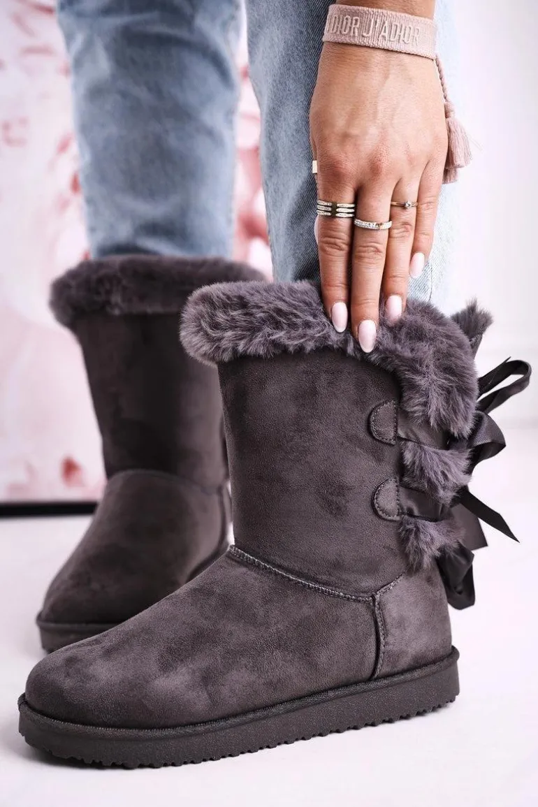 Damskie Śniegowce Ze Wstążką Ocieplone Futerkiem Szare Kaylee