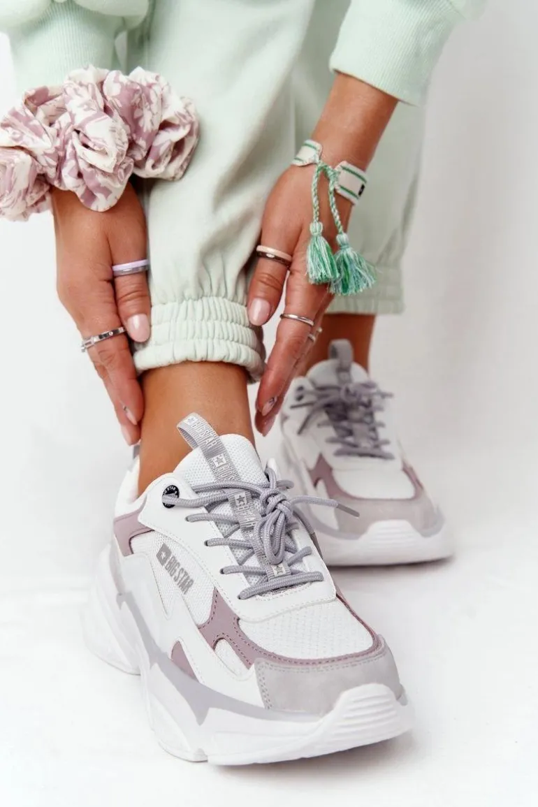 Damskie sportowe buty od polskiej marki Big Star. Cholewka wykonana jest z połączenia przewiewnej tkaniny oraz eko skóry. Buty posiadają antypoślizgową podeszwę oraz wyjątkową wkładkę MEMORY FOAM SYSTEM. Wkładka zapamiętuje kształt stopy, zapewnia doskonałe dopasowanie, absorbuje wstrząsy, jest odporna na odkształcenia oraz pozwala na odparowywanie wilgoci i regulacje temperatury. Koniecznie sprawdź całą naszą kolekcję butów BIG STAR. Przy wyborze rozmiaru prosimy sugerować się tabelą rozmiarów.