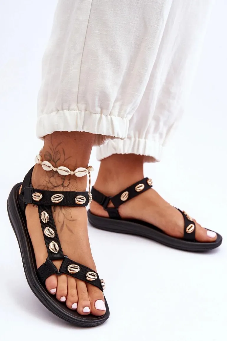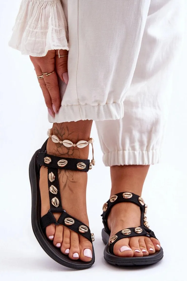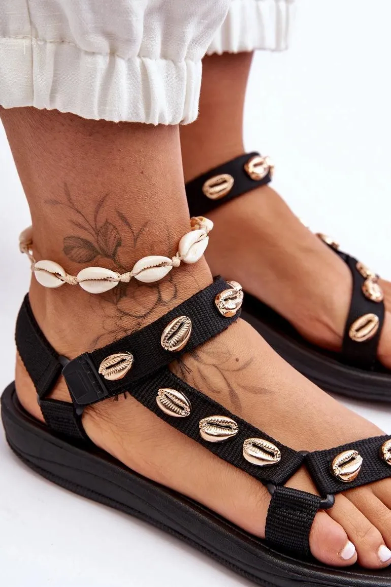 Damskie Sportowe Sandały Ozdobne Złote Muszle Czarne Conner
