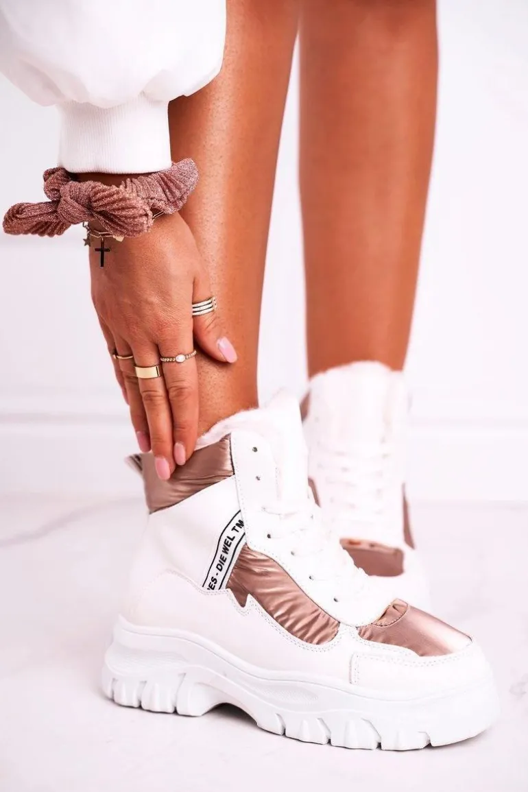 Damskie Sportowe Śniegowce Z Futerkiem Białe Euphoria