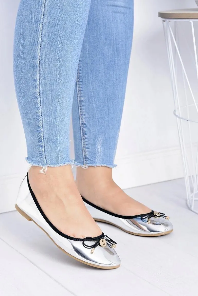 Damskie Srebrne Wsuwane Balerinki Cleoss