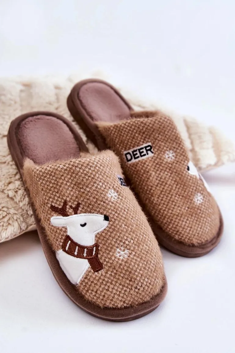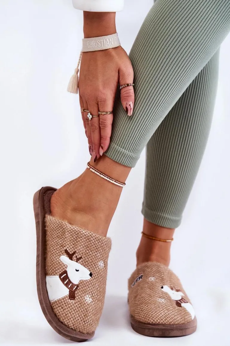 Damskie papcie zostały wykonane z materiału tekstylnego z dodatkiem delikatnego eko futerka. Wewnątrz posiadają ocieplenie w postaci koca obuwniczego. Ozdobione z wierzchu motywem renifera i śnieżynek. Miękka wkładka zapewni komfort podczas użytkowania. Osadzone na gumowej, elastycznej podeszwie. Przy wyborze rozmiaru prosimy sugerować się tabelą rozmiarów.