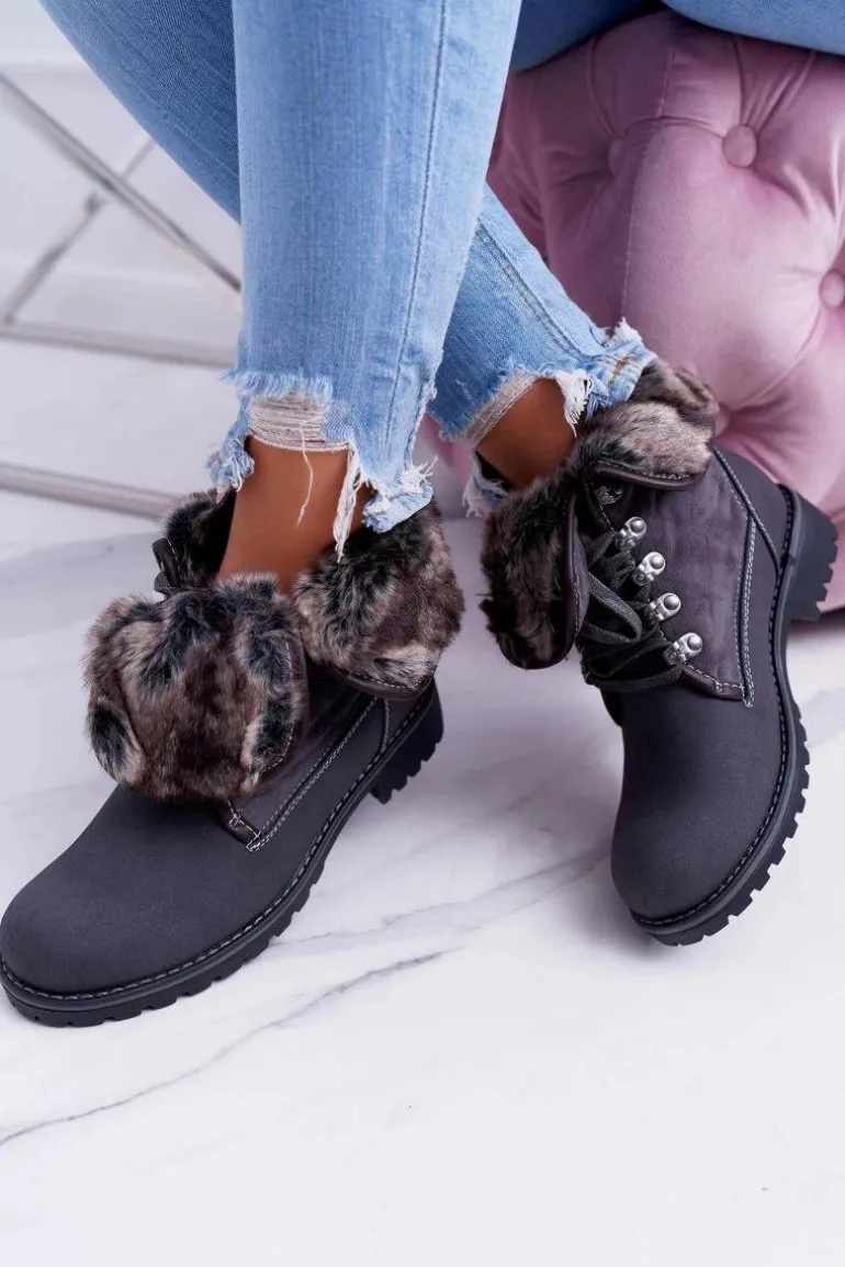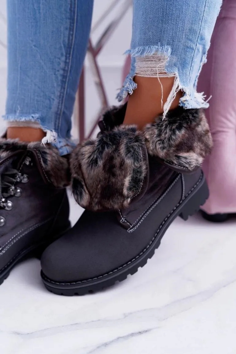 Damskie Szare Botki Trapery z Futerkiem Chester