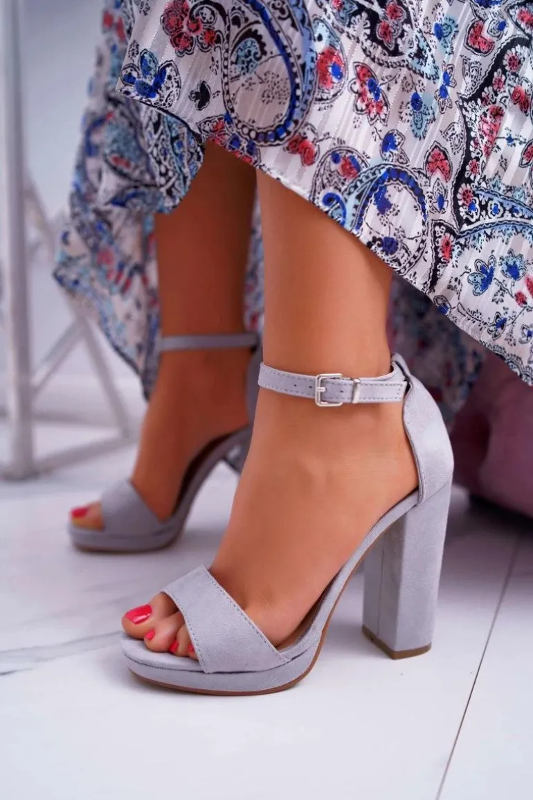 Damskie Szare Sandały Na Słupku Platforma Debora