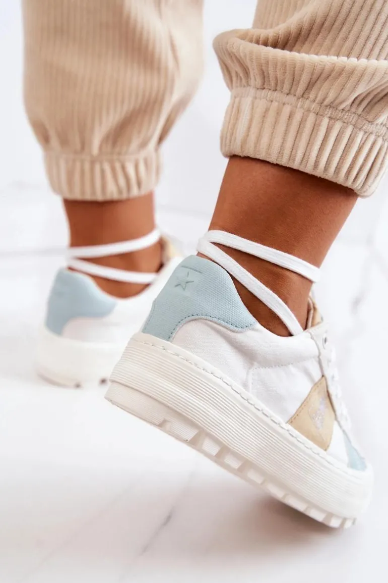 Piękny model tenisówek od marki Big Star! Wykonane z tkaniny, ozdobnie przyszyte kawałki materiałów w innym kolorze. Posiadają masywną, antypoślizgową platformę, która delikatnie uniesie Twoją sylwetkę, a jednocześnie zapewni stabilność na nierównym podłożu. Tenisówki klasycznie wiązane. Świetny model do wielu stylizacji! Przy wyborze rozmiaru prosimy sugerować się tabelą rozmiarów.