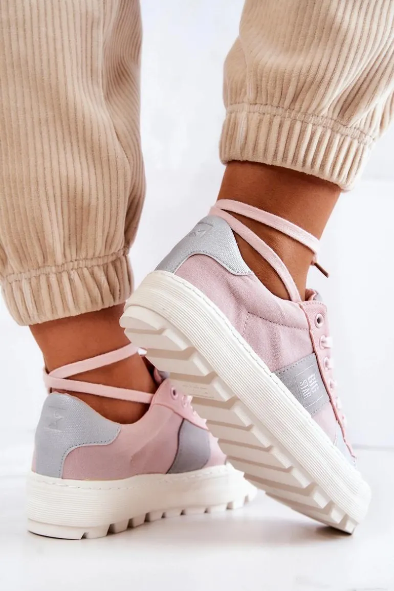Piękny model tenisówek od marki Big Star! Wykonane z tkaniny, ozdobnie przyszyte kawałki materiałów w innym kolorze. Posiadają masywną, antypoślizgową platformę, która delikatnie uniesie Twoją sylwetkę, a jednocześnie zapewni stabilność na nierównym podłożu. Tenisówki klasycznie wiązane. Świetny model do wielu stylizacji! Przy wyborze rozmiaru prosimy sugerować się tabelą rozmiarów.