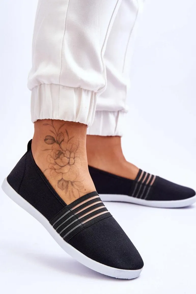 Tenisówki slip-on z cholewką przed kostkę zostały wykonane z materiału tekstylnego. Osadzone na delikatnej platformie z zaokrąglonym noskiem. Model wsuwany. Idealne na co dzień — do pracy, na zakupy czy spotkanie ze znajomymi. Wygodne i komfortowe w użytkowaniu. Posiadają materiałową wkładkę oraz ozdobne, prześwitujące paseczki. Przy wyborze rozmiaru prosimy sugerować się tabelą rozmiarów.