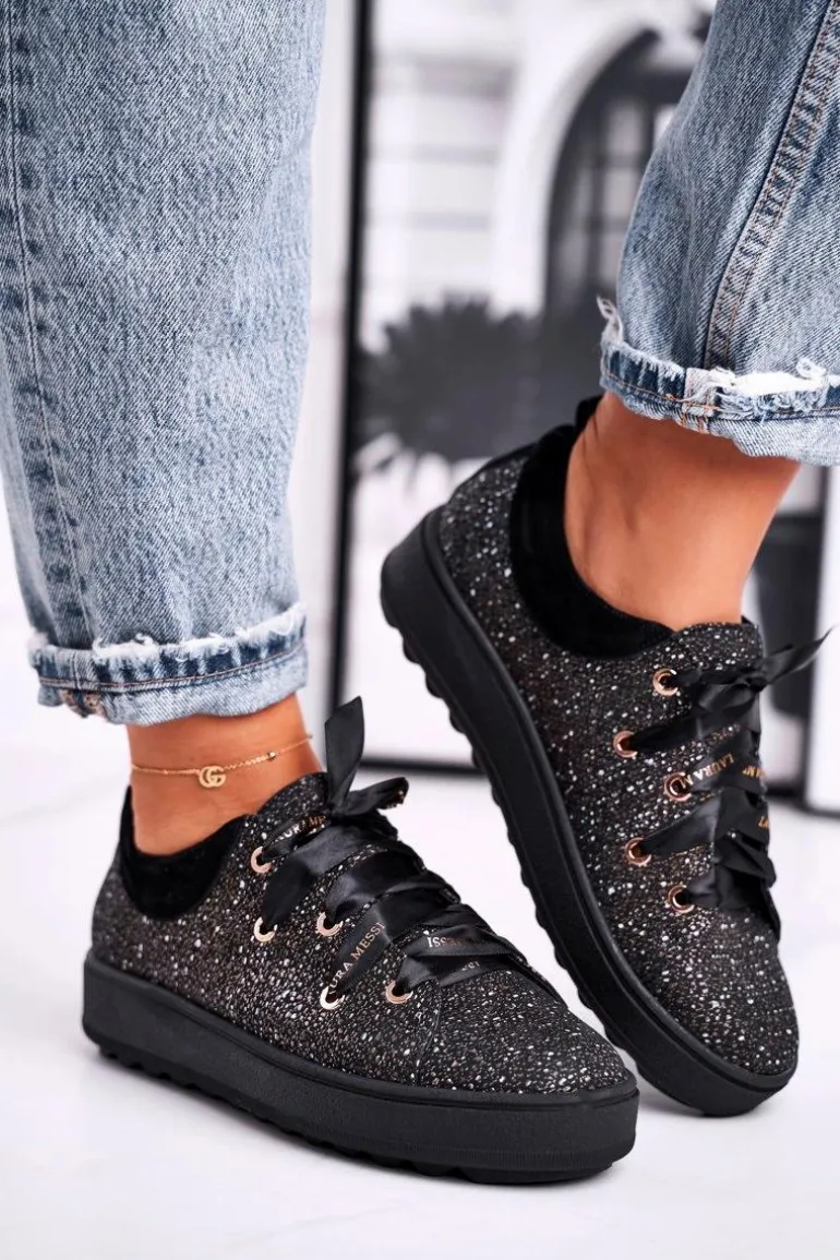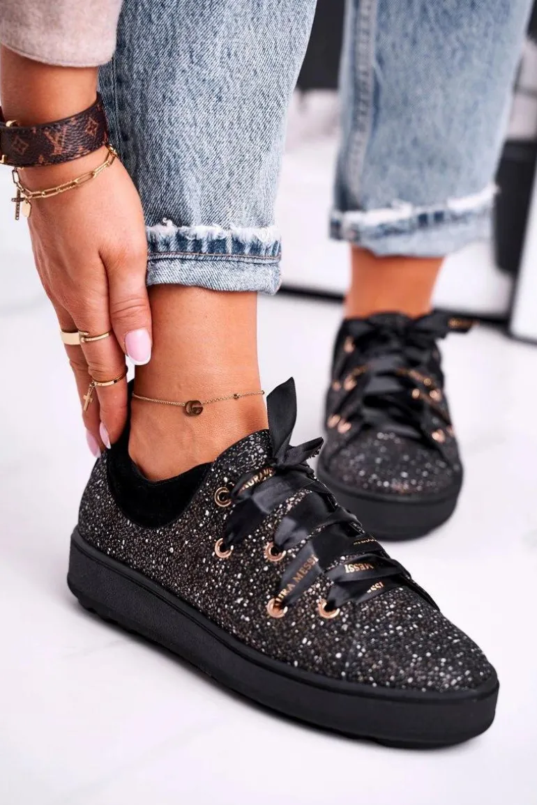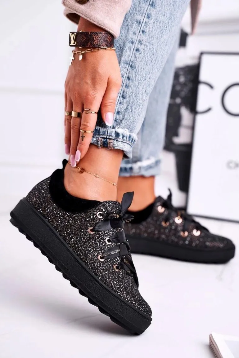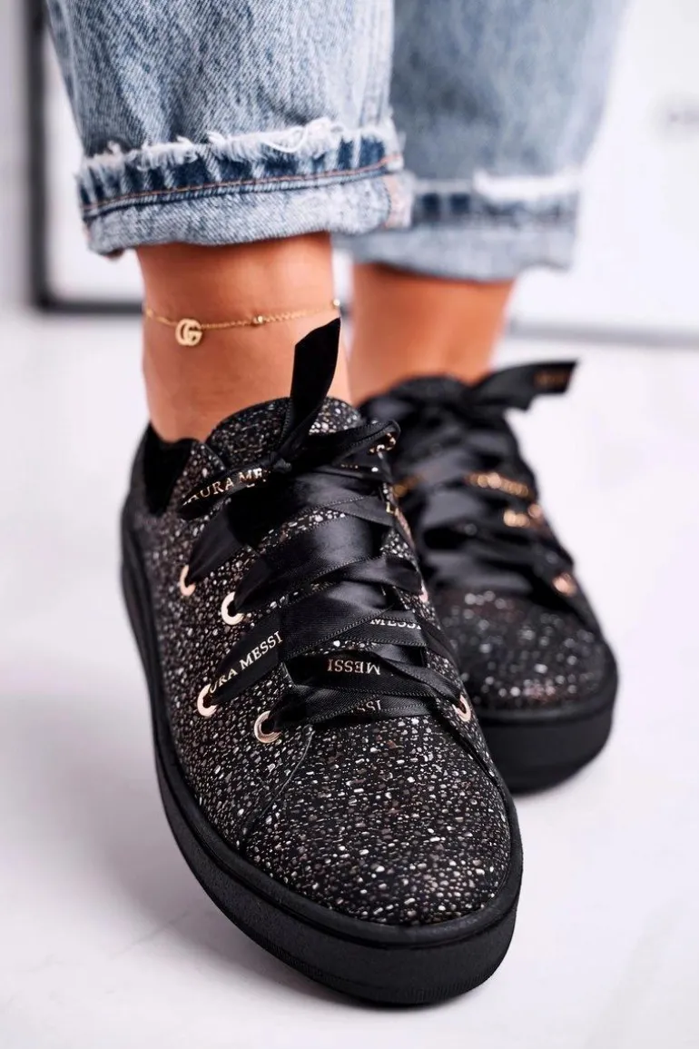 Damskie Trampki Eleganckie Skórzane Laura Messi Czarne 2045