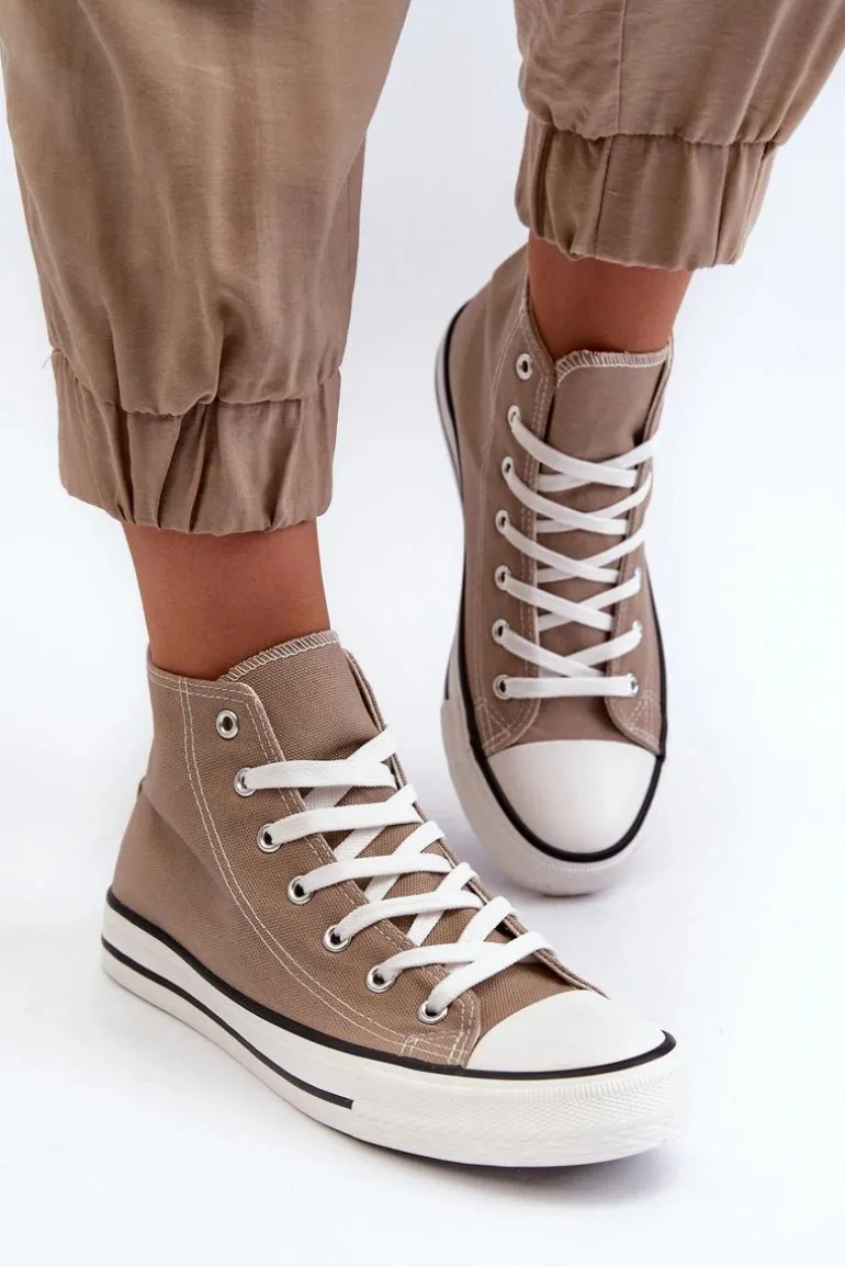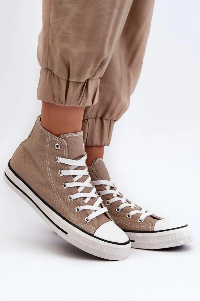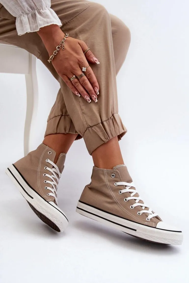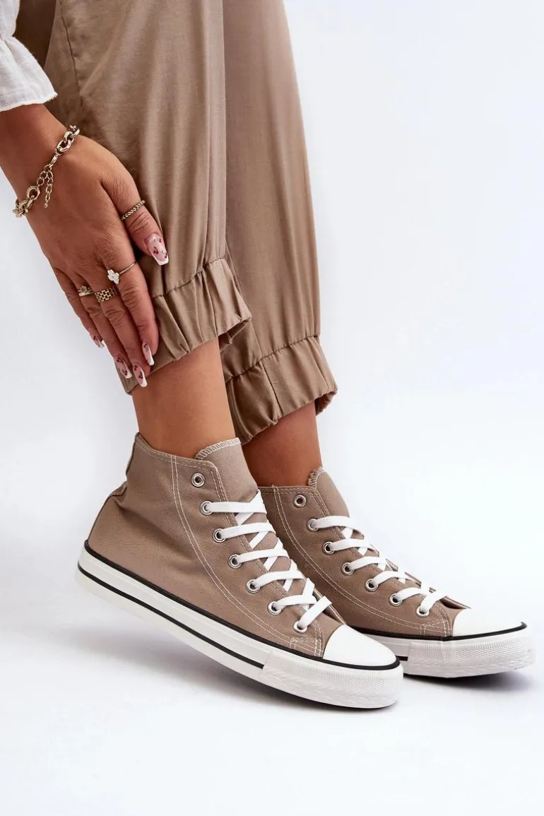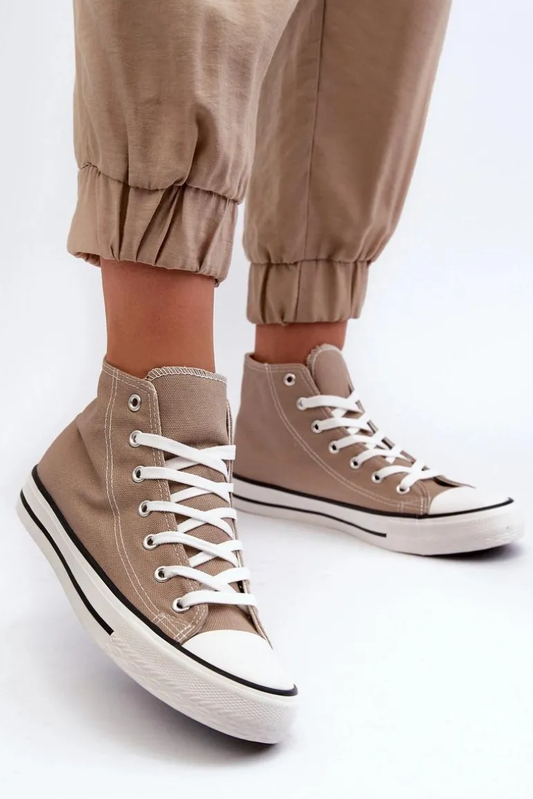 Damskie Trampki Klasyczne Wysokie Beżowe Remos