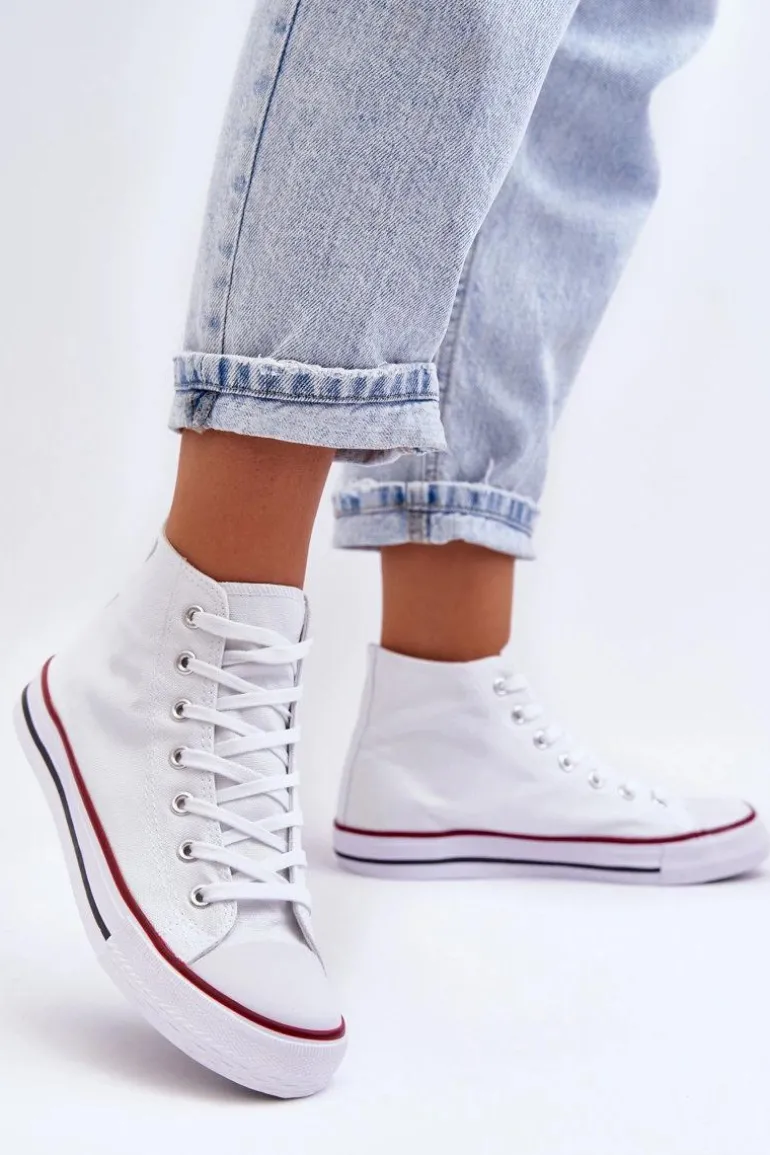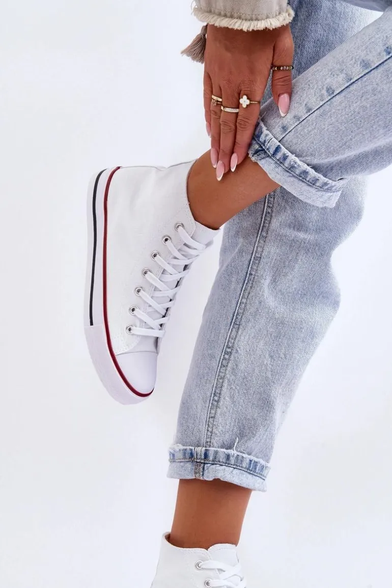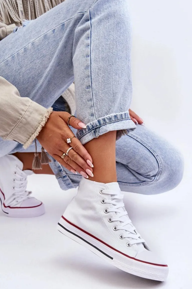 Damskie Trampki Klasyczne Wysokie Białe Remos