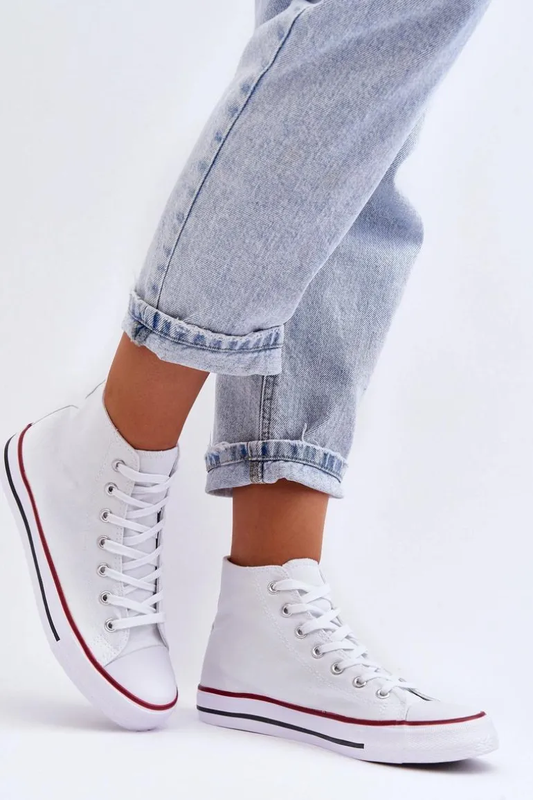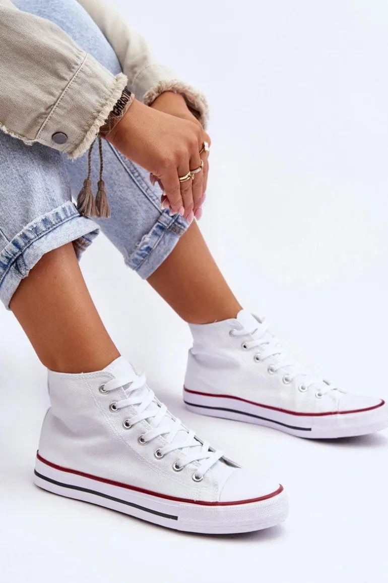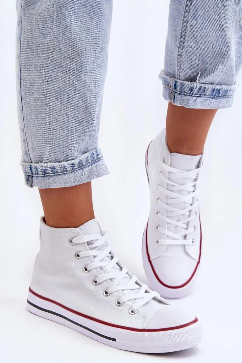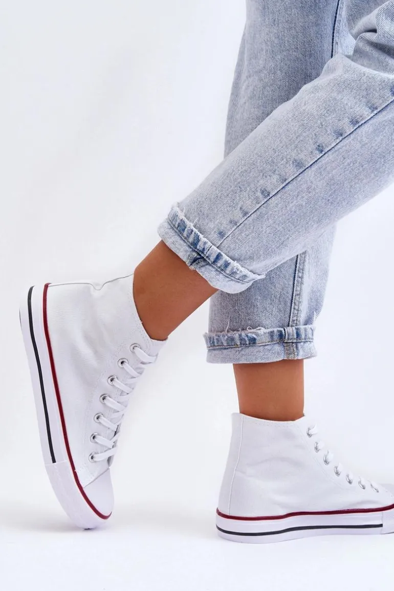 Damskie Trampki Klasyczne Wysokie Białe Remos