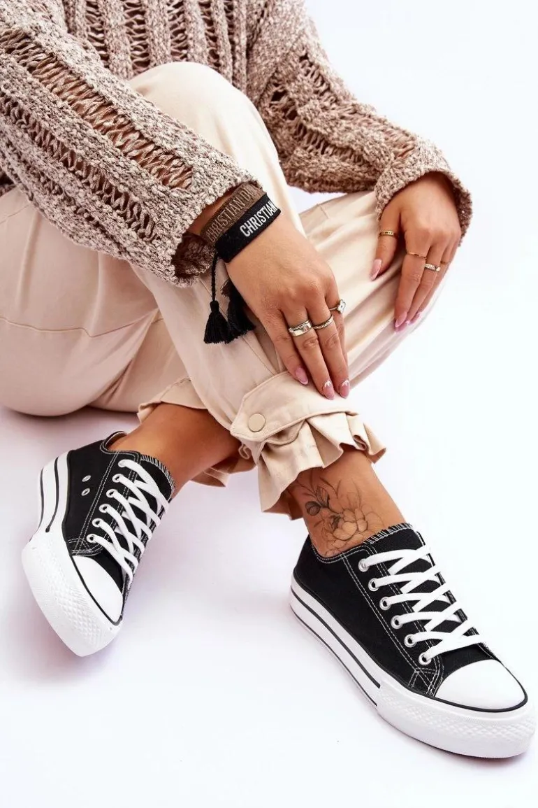 Damskie Trampki Na Masywnej Platformie Czarne Ember