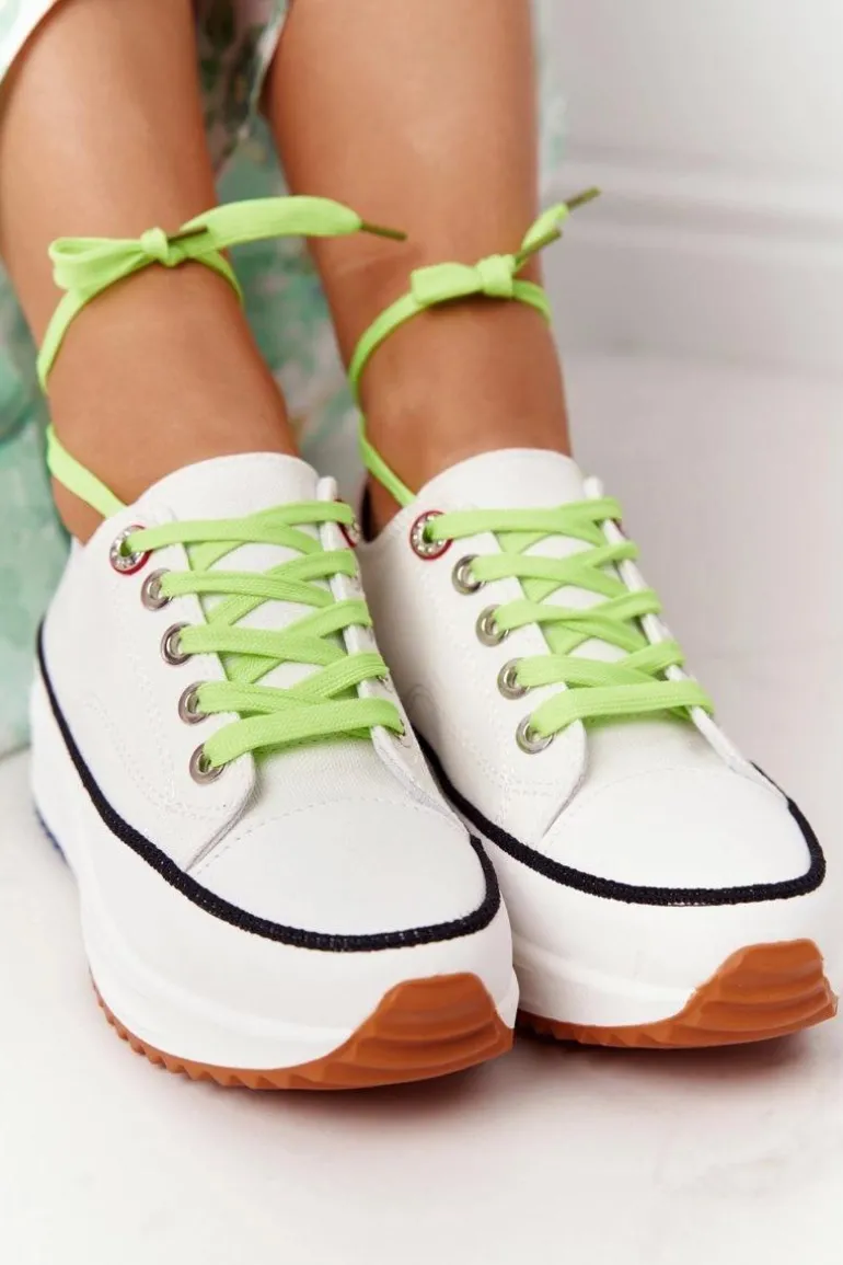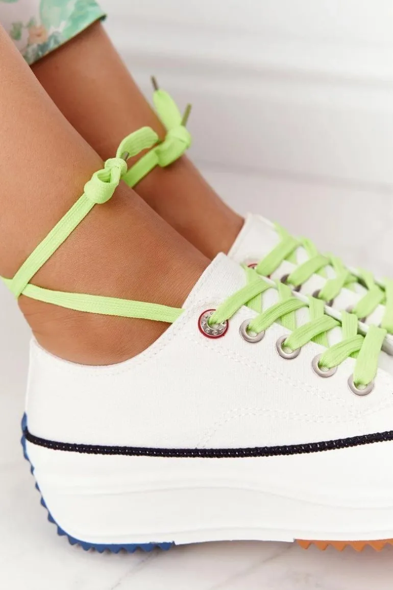 Wyjątkowe trampki na platformie. Buty dobrze dopasowują się do kształtu stopy, posiadają profilowaną wkładkę z eko skóry oraz antypoślizgową podeszwę. Koniecznie sprawdź całą naszą kolekcję trampek! Trampki posiadają dwie pary sznurówek – zielone oraz białe. Przy wyborze rozmiaru prosimy sugerować się tabelą rozmiarów.