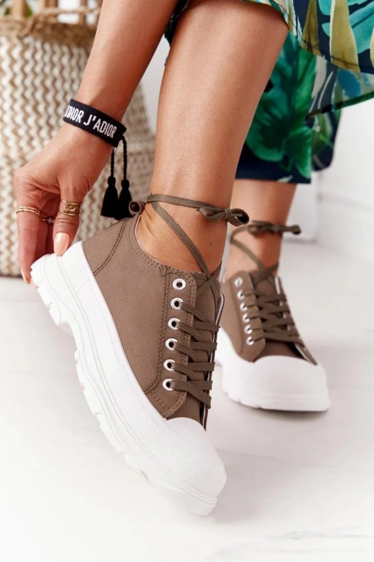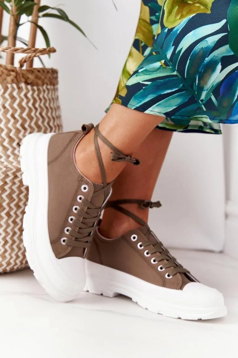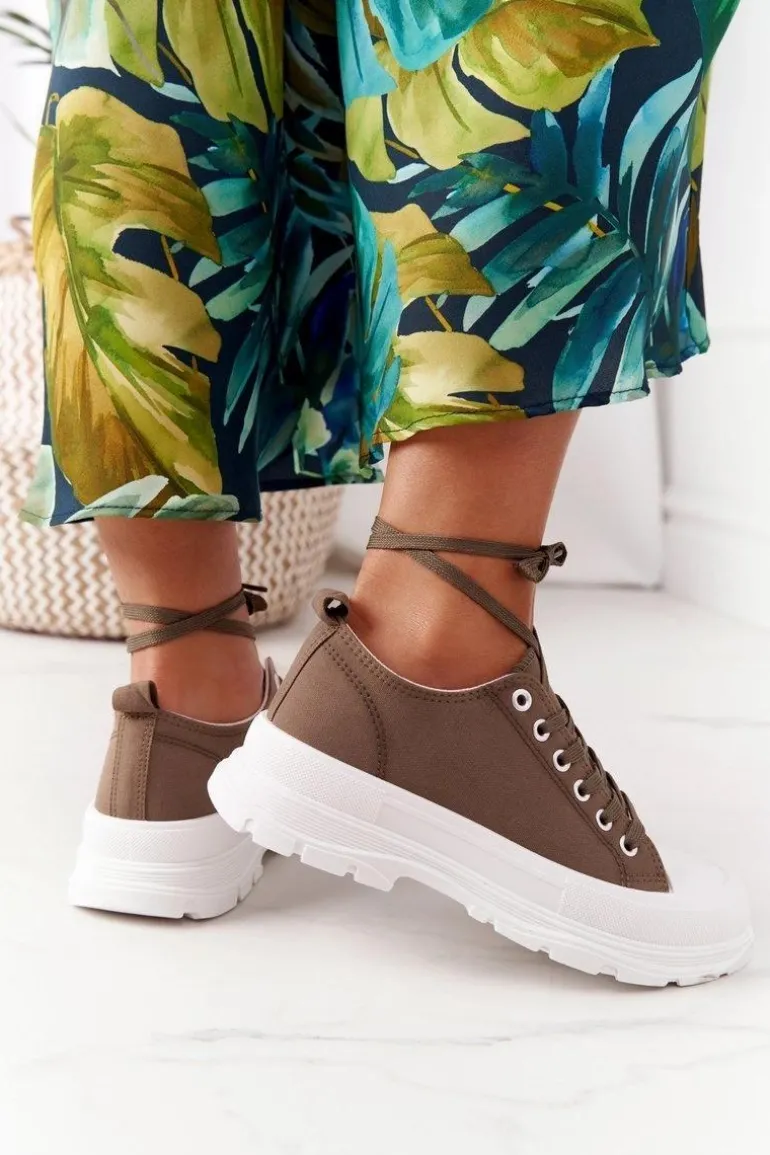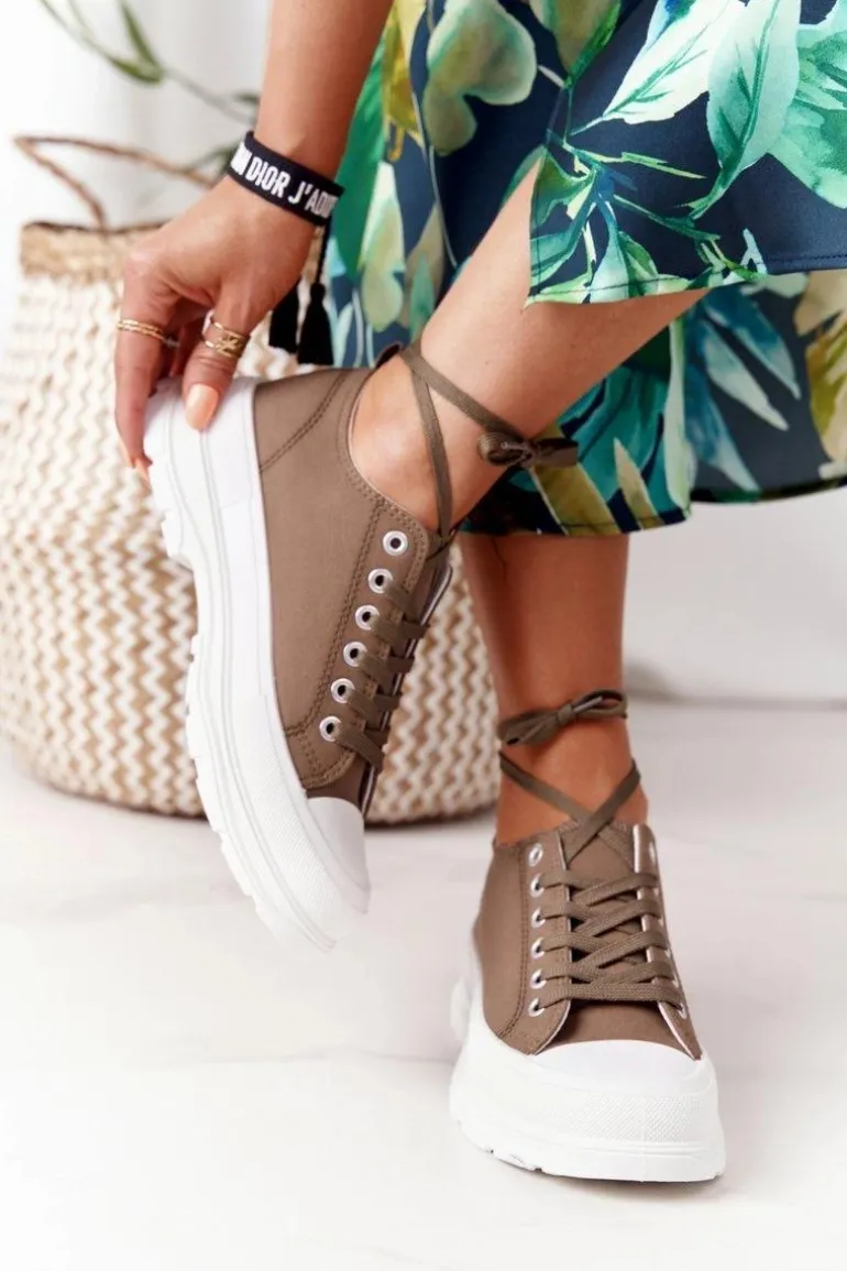 Damskie Trampki Na Platformie Brązowe Travel Time