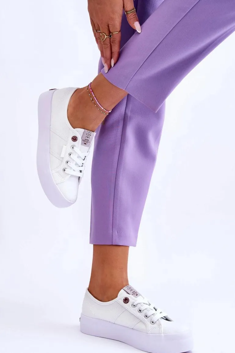 Damskie tenisówki na platformie CROSS JEANS. Buty dobrze dopasowują się do kształtu stopy, posiadają miękką, materiałową wkładkę oraz antypoślizgową podeszwę wykonaną z gumowego tworzywa. Dodatkowo trampki te posiadają usztywniany zapiętek. Koniecznie sprawdź całą naszą kolekcję butów marki CROSS JEANS! Przy wyborze rozmiaru prosimy sugerować się tabelą rozmiarów.