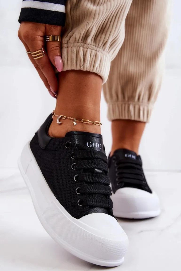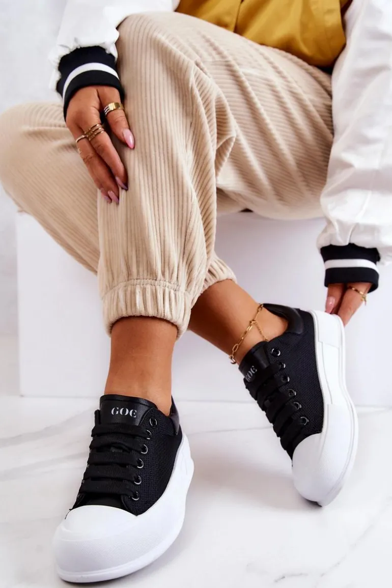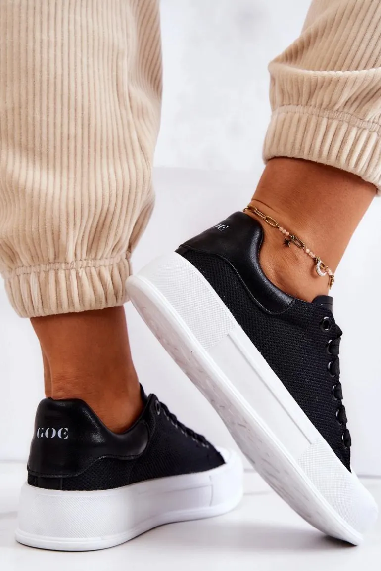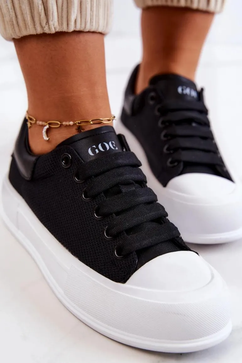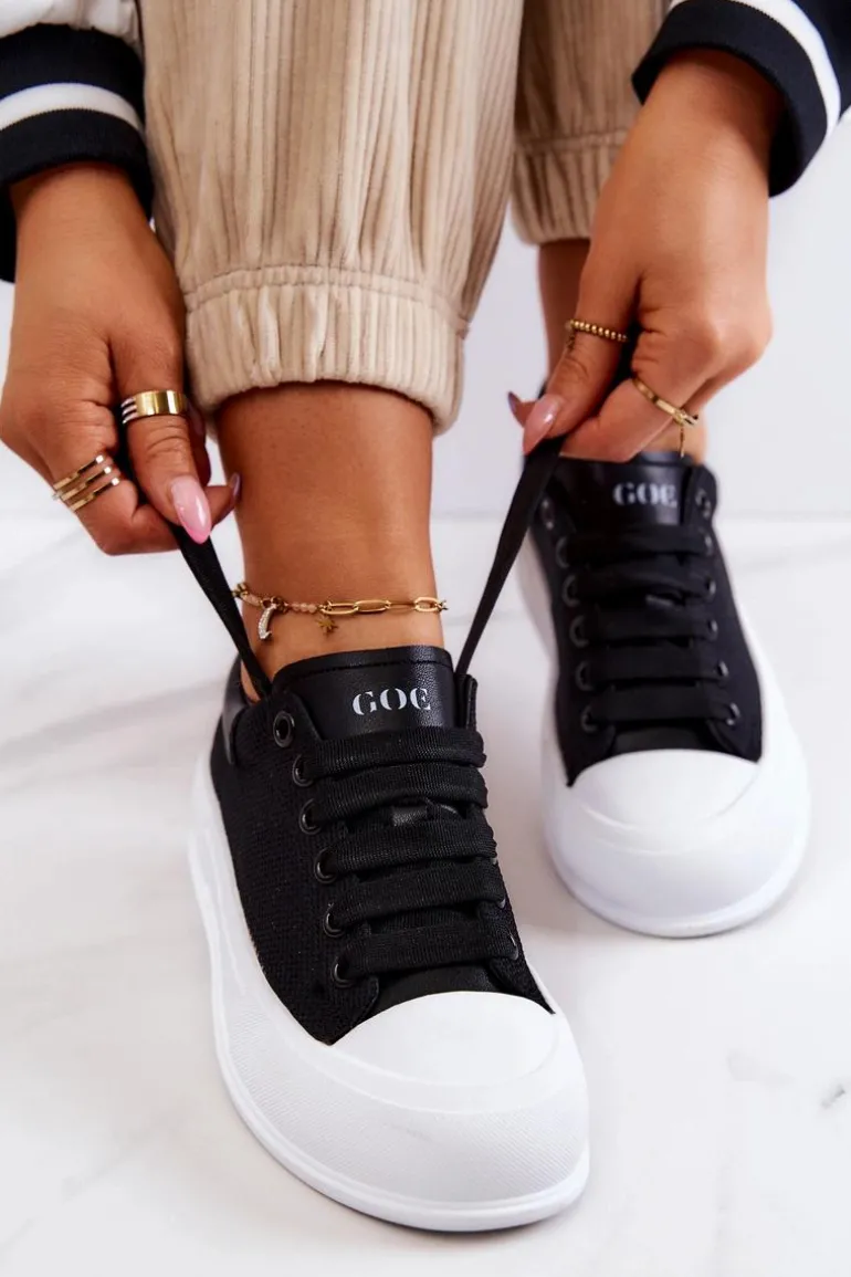 Trampki zostały wykonane z przewiewnego materiału oraz eko skóry. Wysoka jakość wykonania – ta cecha właśnie wyróżnia markę GOE! Klasyczne wiązanie, które odpowiednio dopasujesz do własnych potrzeb. Gumowa podeszwa oraz wzmacniany nosek. W środku wkładka eko skórzana z logo marki GOE. Przy wyborze rozmiaru prosimy sugerować się tabelą rozmiarów.