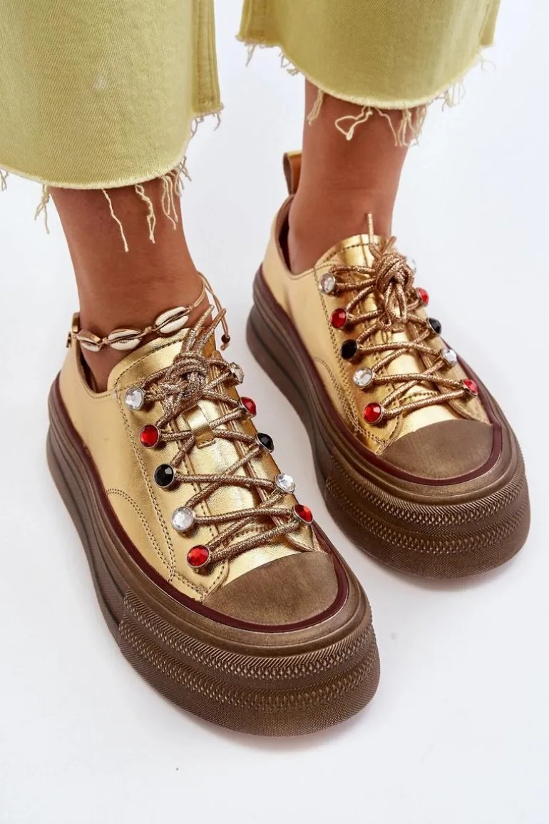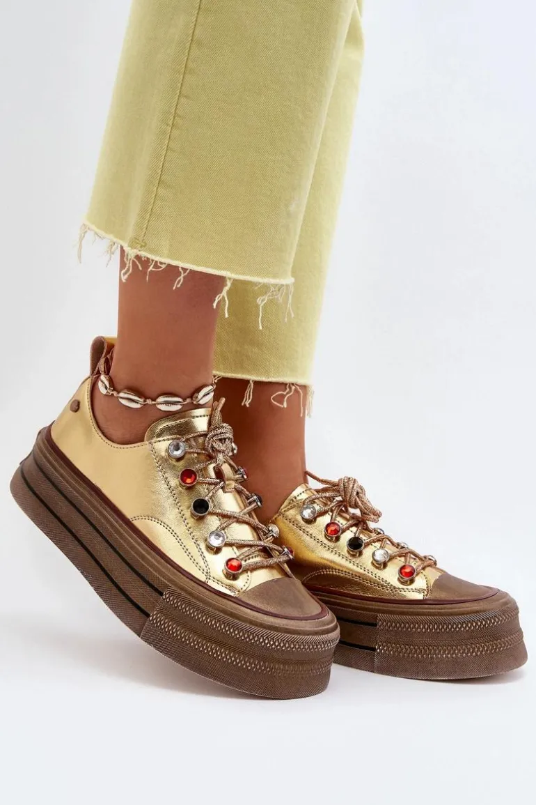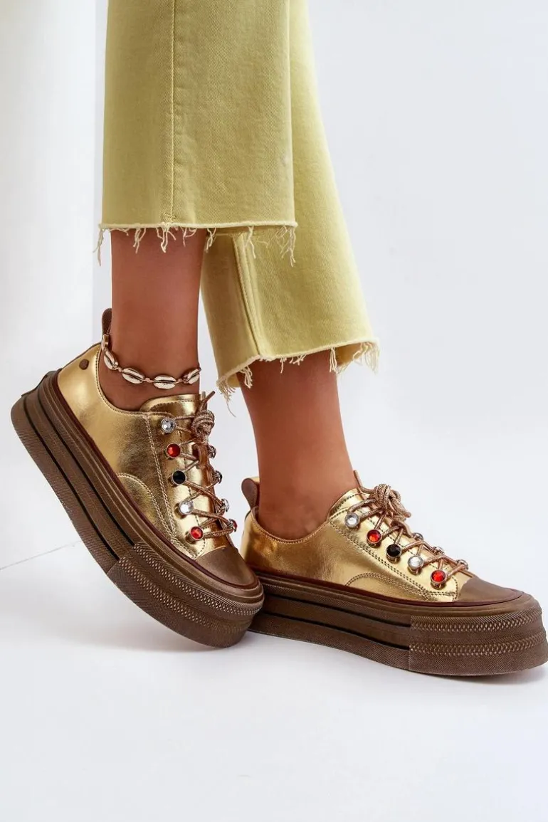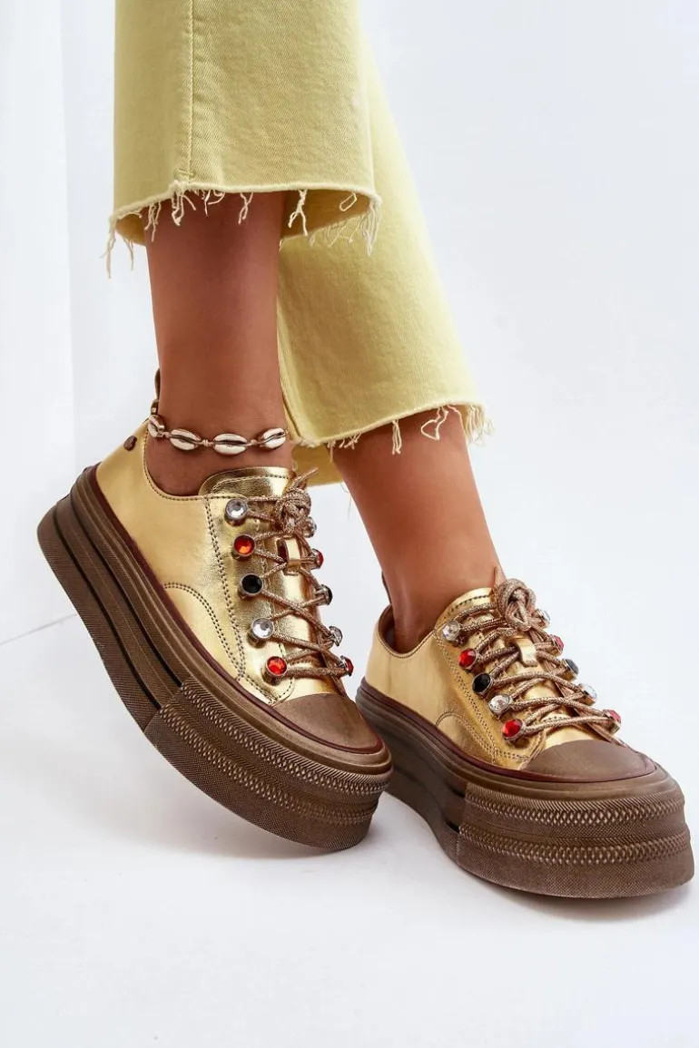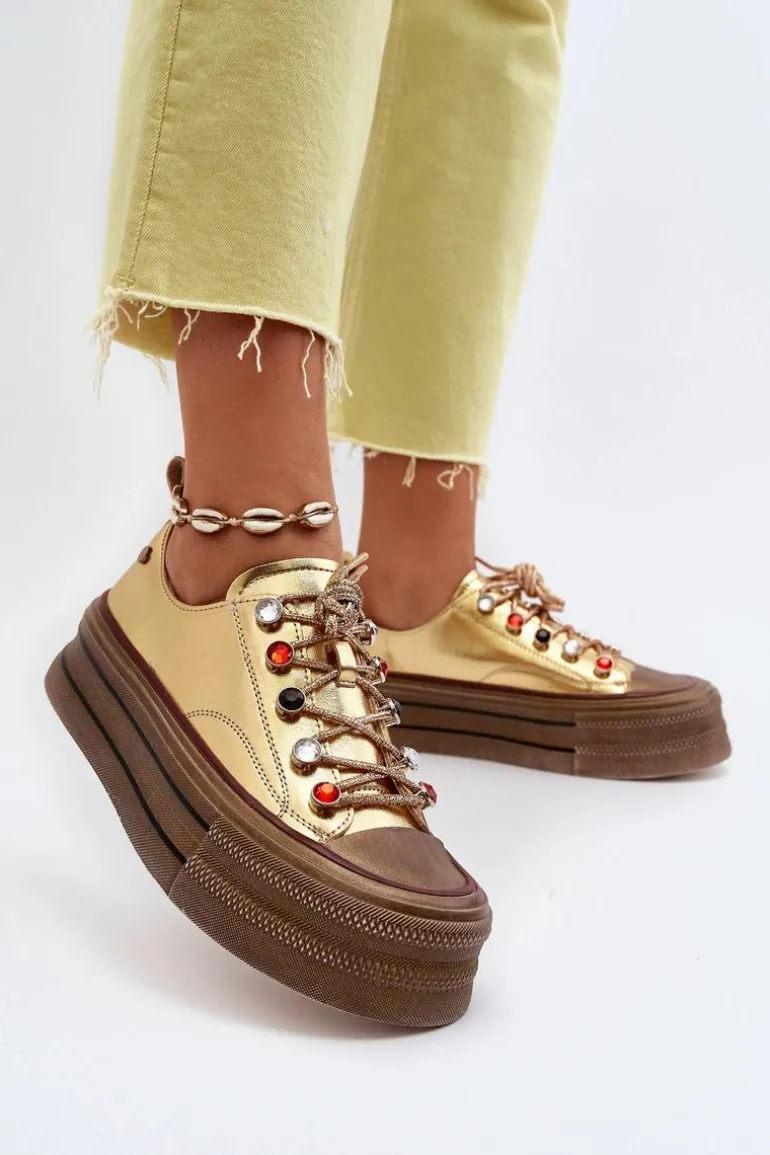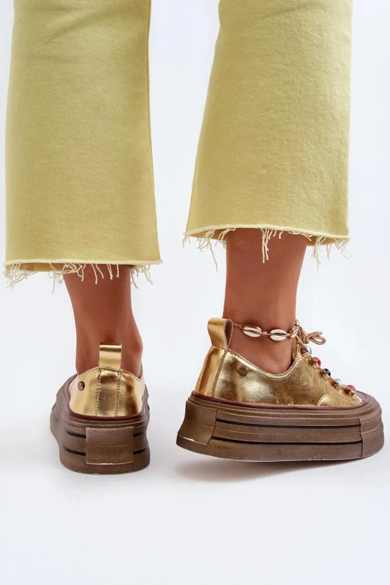 Damskie Trampki Na Platformie GOE NN2N4055 Złote