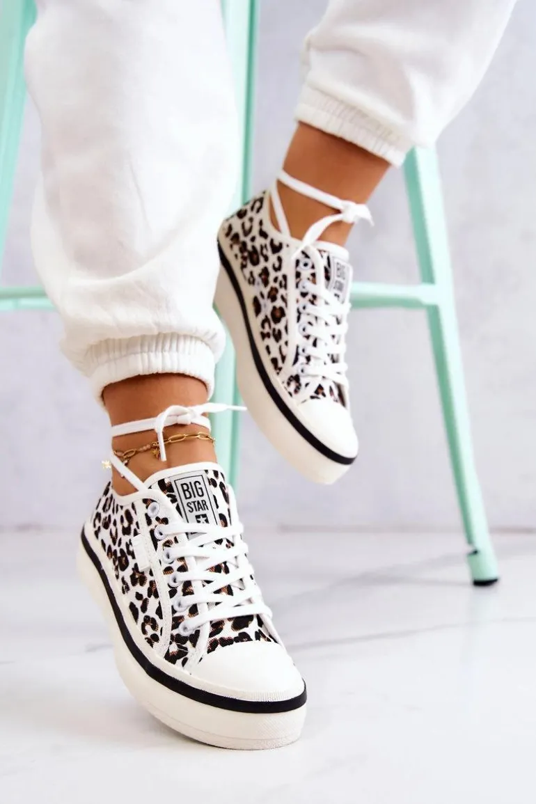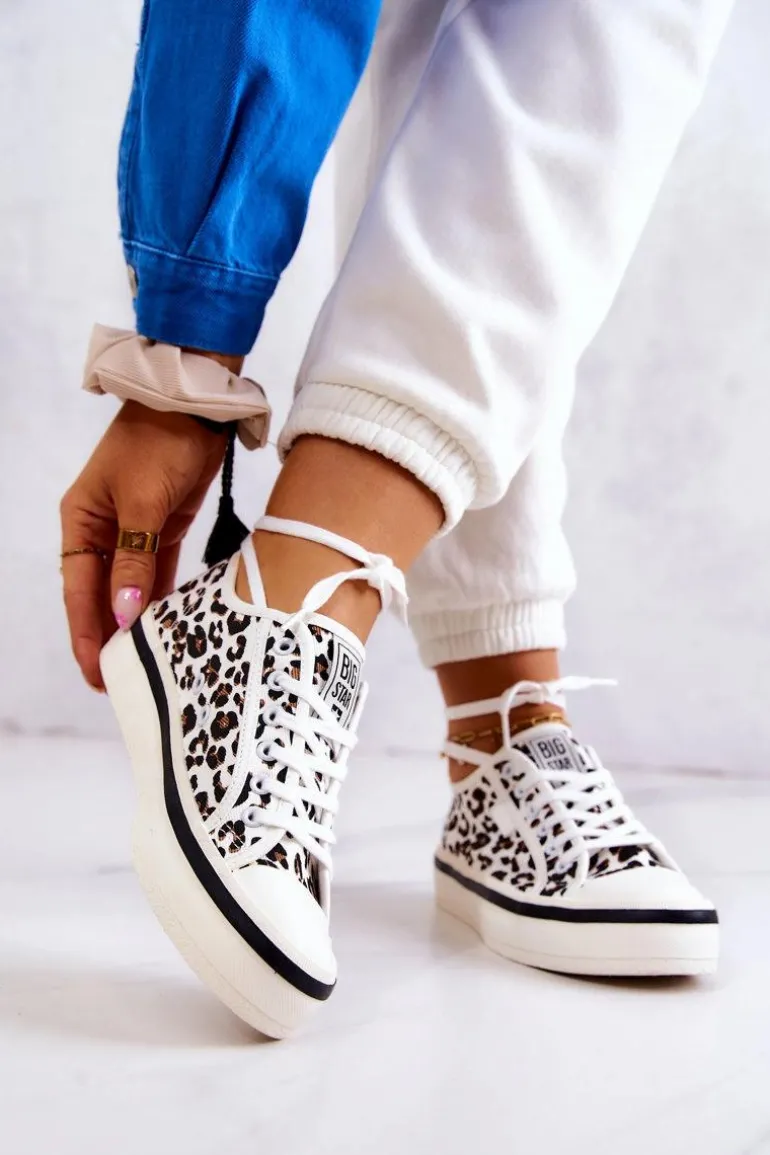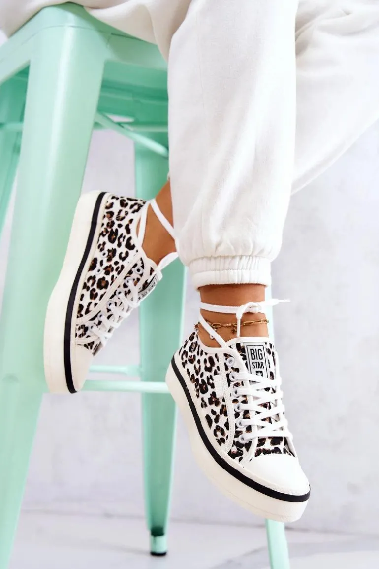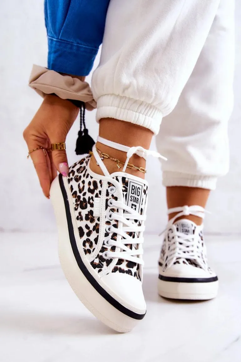 Materiałowa cholewka jest idealna na letnie dni, ponieważ jest przewiewna i wygodna w codziennym użytkowaniu. Trampki posiadają materiałową, odporną na ścieranie wkładkę. Zabezpieczenie przed zsunięciem oraz dopasowanie do stopy zapewni wiązanie. Gumowa podeszwa jest antypoślizgowa oraz elastyczna. Nosek jest wzmacniany gumowym tworzywem. Buty posiadają usztywniany zapiętek. Modny print świetnie sprawdzi się do basicowych stylizacji.Przy wyborze rozmiaru prosimy sugerować się tabelą rozmiarów.