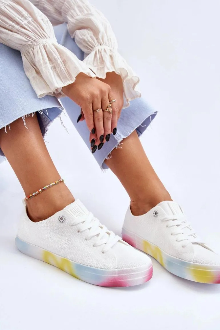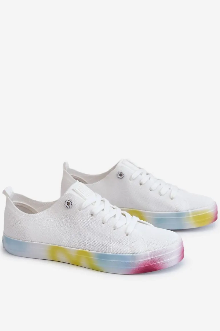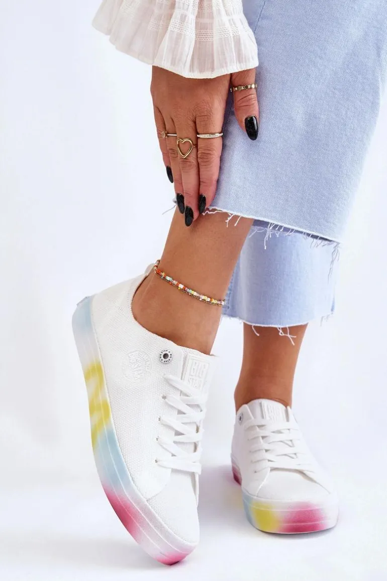 Wyjątkowe, damskie trampki marki Big Star! Z tymi butami na pewno wyróżnisz się z tłumu! Zostały wykonane z materiału tekstylnego. Trampki zostały osadzone na kolorowej platformie oraz antypoślizgowej podeszwie wykonanej z gumowego tworzywa. Zapiętek jest delikatnie wzmocniony dodatkowym materiałem. Miękka wkładka zapewni wygodę podczas użytkowania! Przy wyborze rozmiaru prosimy sugerować się tabelą rozmiarów.