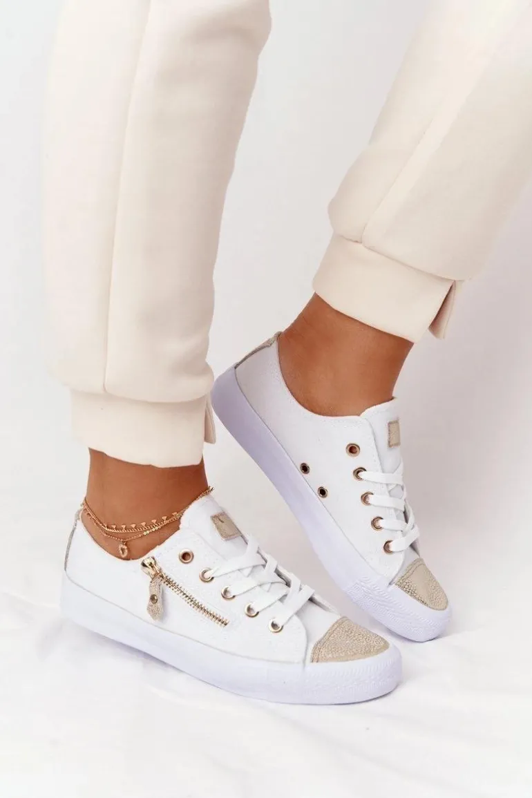 Klasyczne trampki ozdobione suwakiem. Trampki pasują do wielu stylizacji, dobrze dopasowują się do kształtu stopy, posiadają miękką, materiałową wkładkę oraz antypoślizgową podeszwę. Koniecznie sprawdź całą naszą kolekcję trampek damskich! Przy wyborze rozmiaru prosimy sugerować się tabelą rozmiarów.