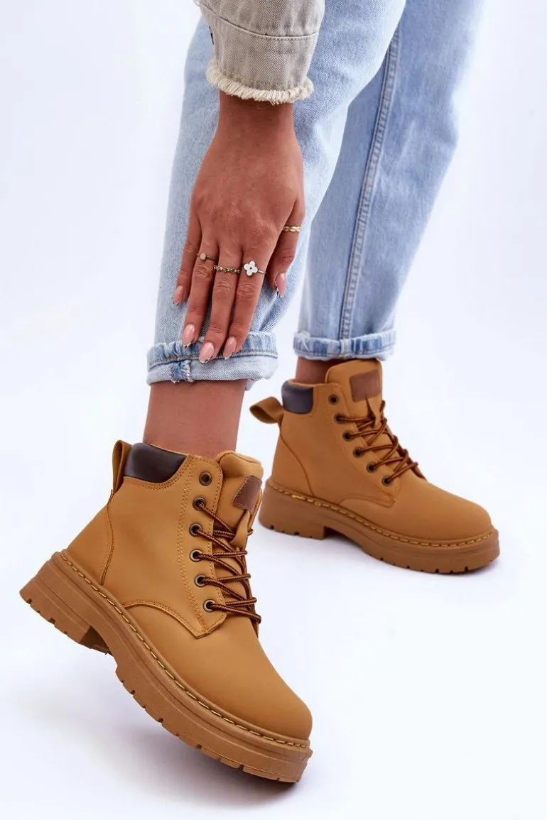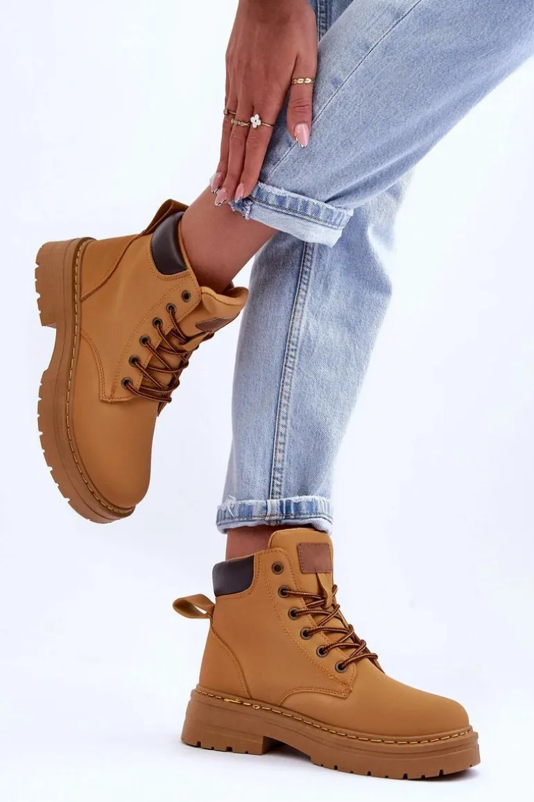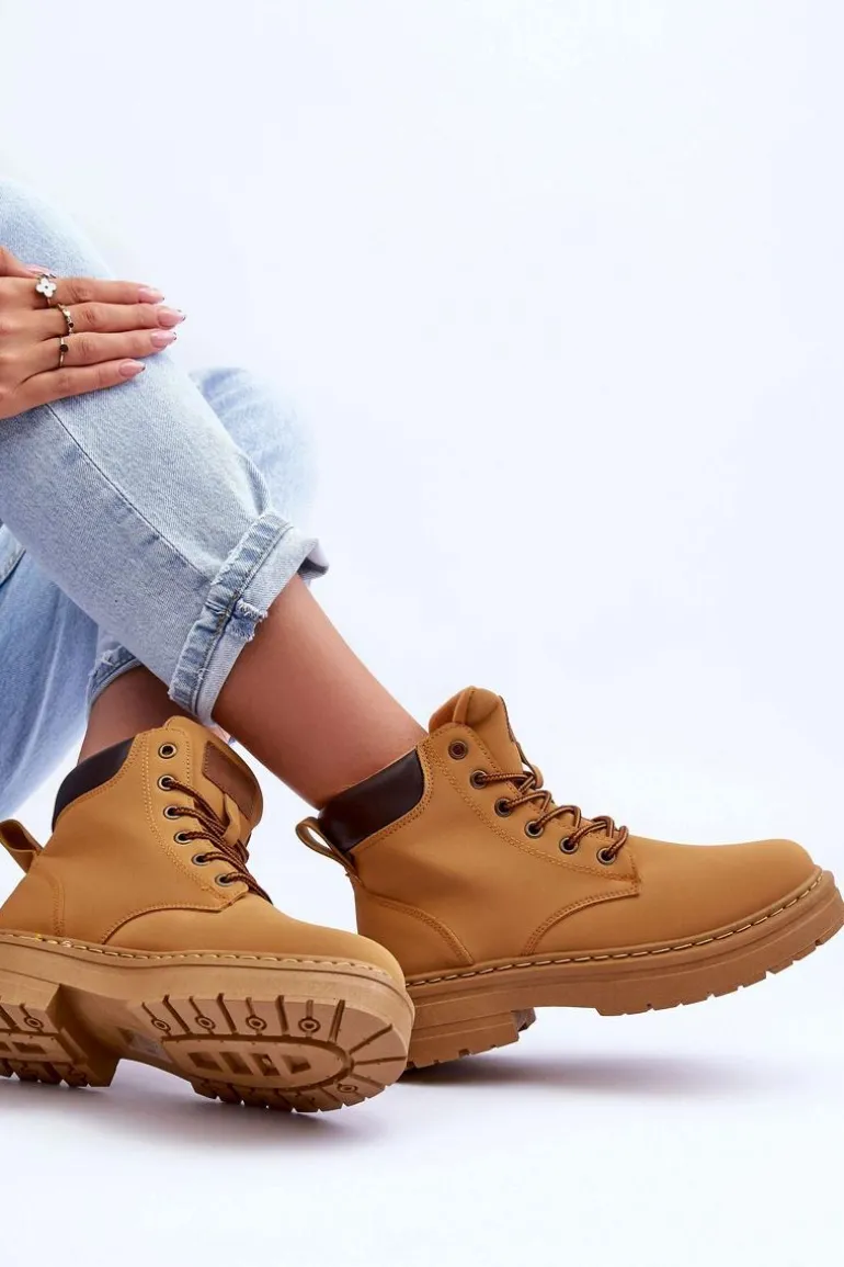 Buty zostały wykonane z miękkiej eko skóry. Osadzone na platformie i płaskim obcasie. Środek został ocieplony kocem obuwniczym. Trapery posiadają przeszycia na cholewce. Wiązanie sprawia, że można je dopasować do własnych potrzeb. Ten model traperów zachwyci każdego! Przy wyborze rozmiaru prosimy sugerować się tabelą rozmiarów.
