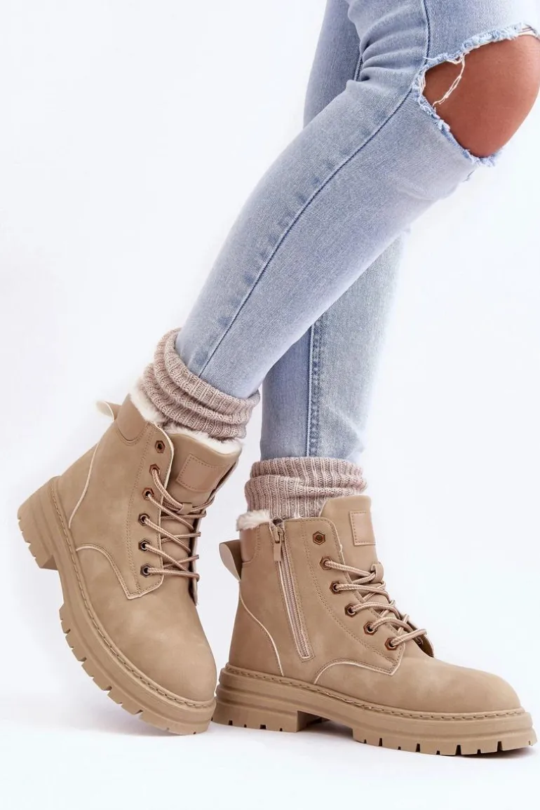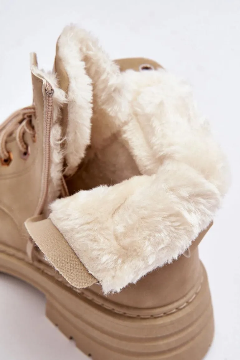 Damskie Trapery Ocieplane Futerkiem Beżowe Fenan