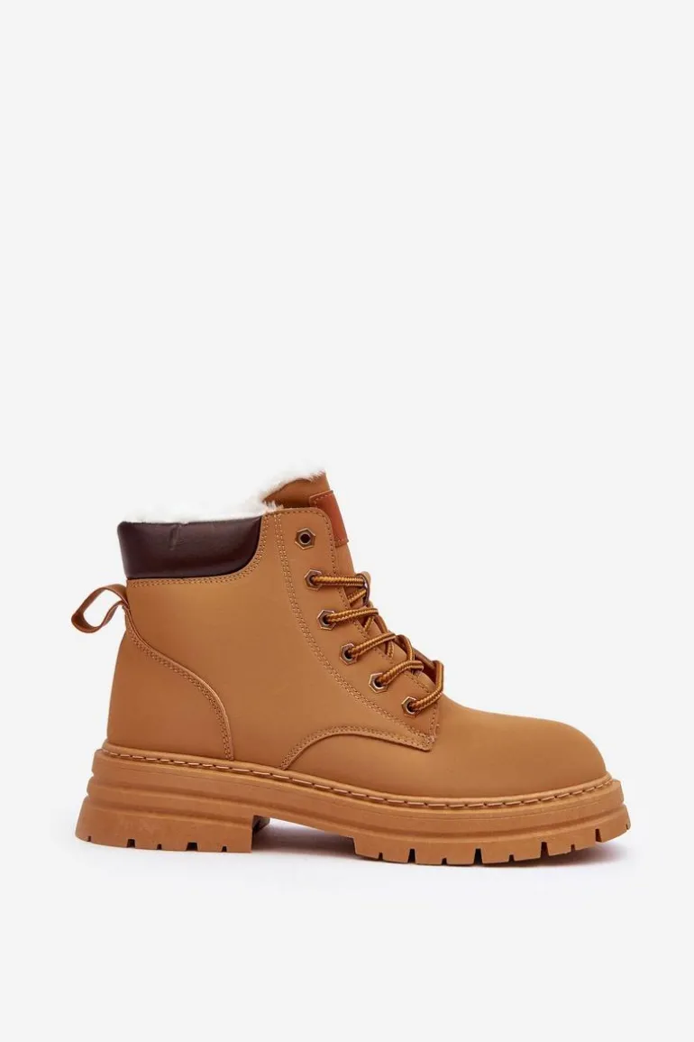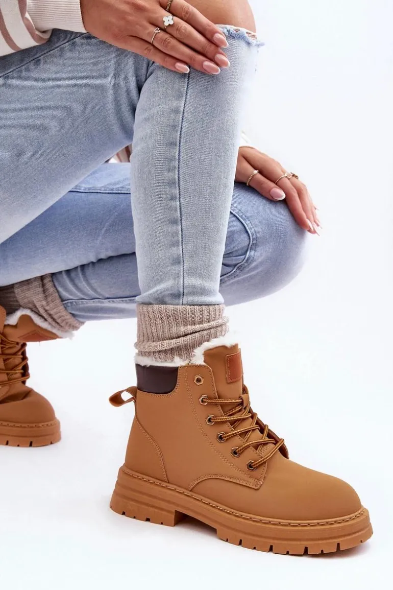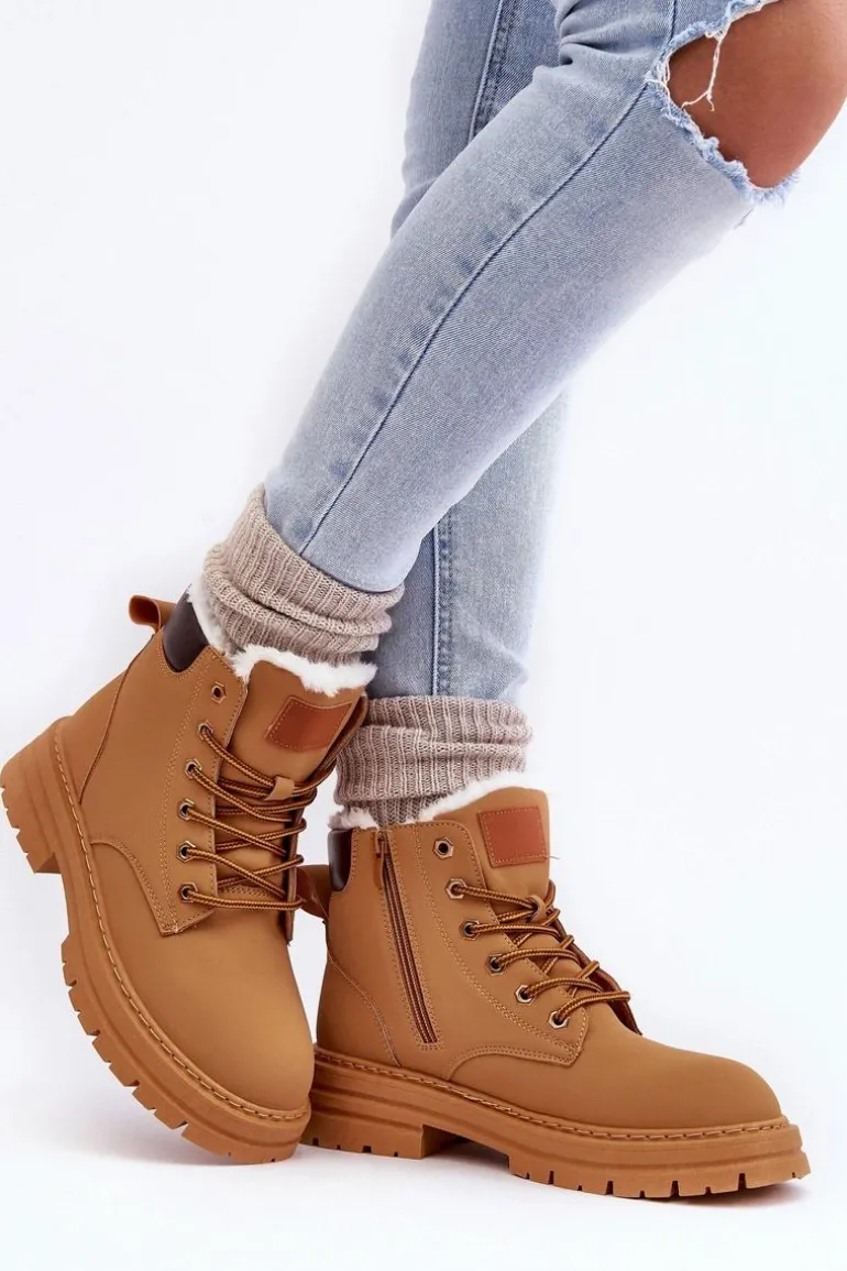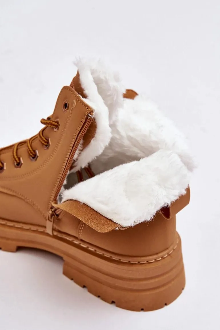 Damskie Trapery Ocieplane Futerkiem Camel Fenan