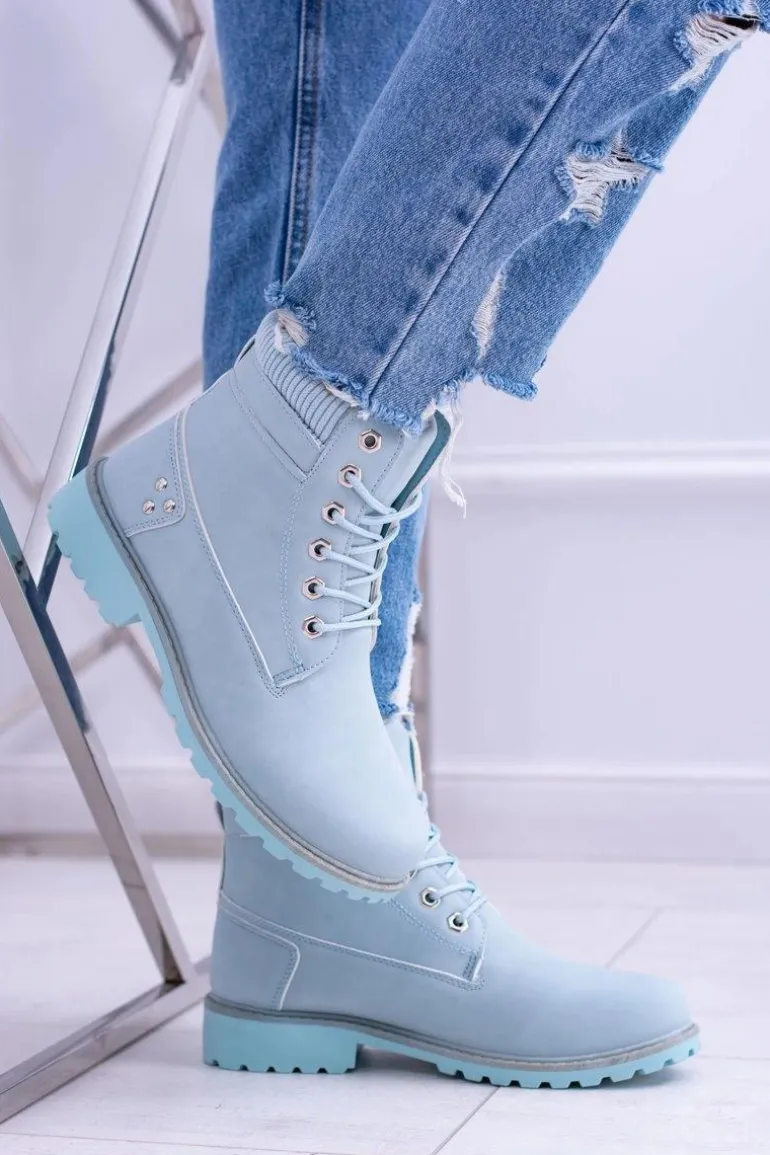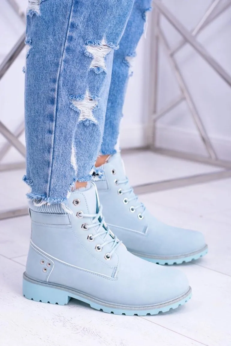 Damskie Trapery Ocieplane Timberki Błękitne Oxford