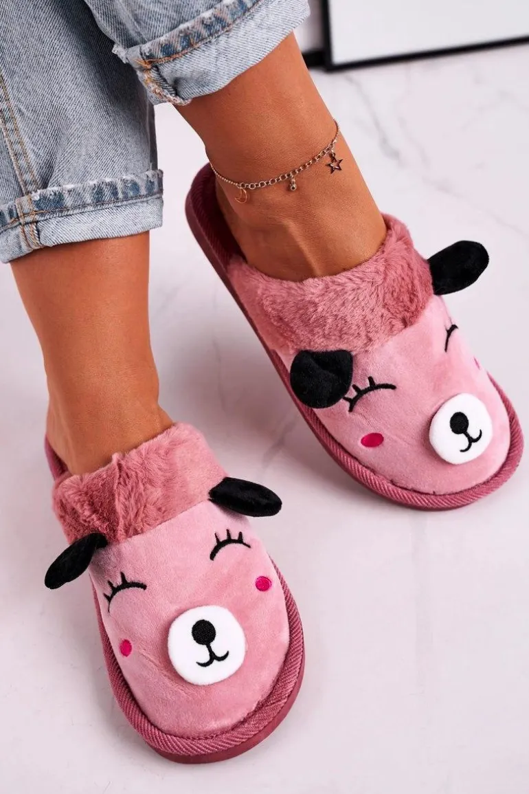 Damskie Welurowe Papcie Z Lamą Różowe Ruddy