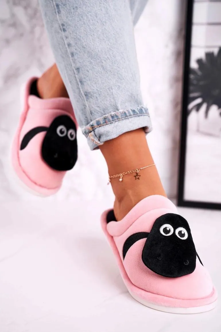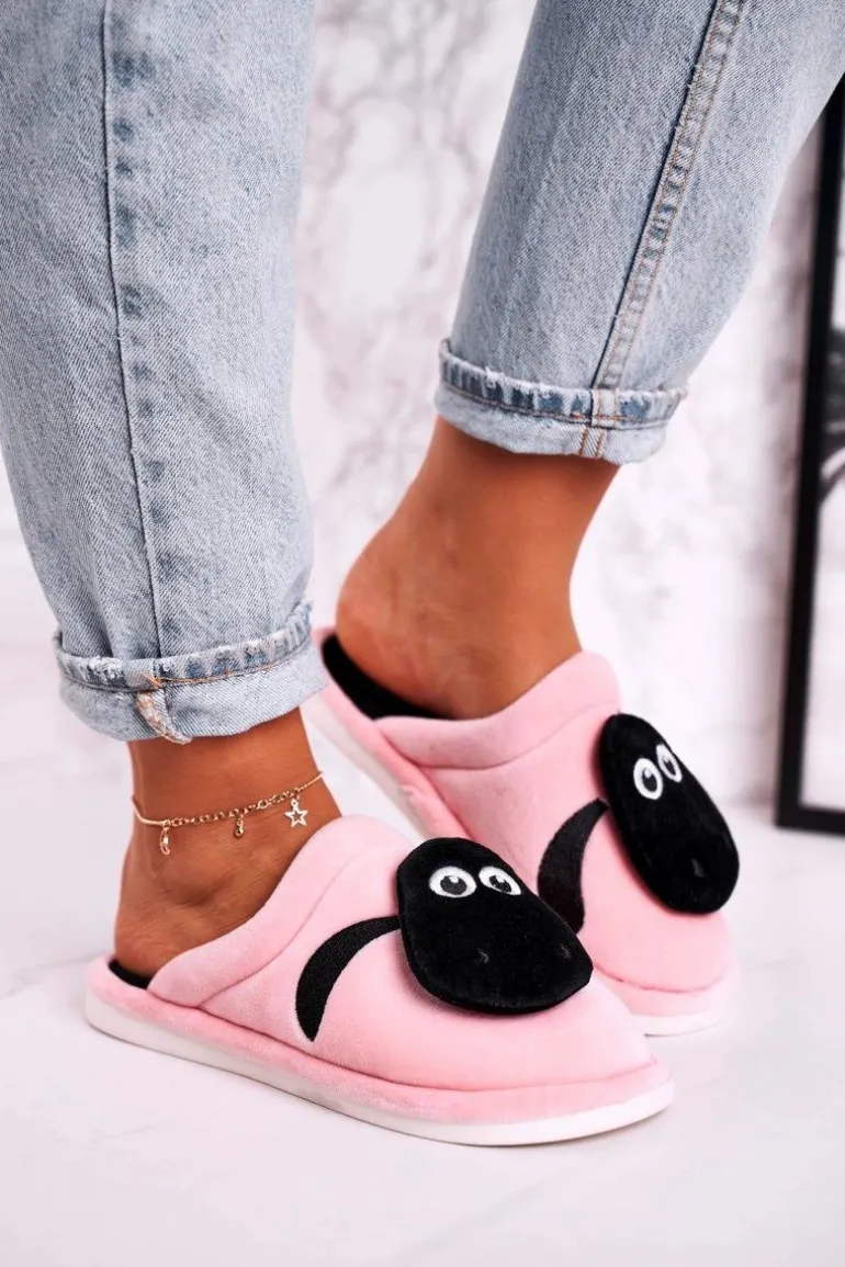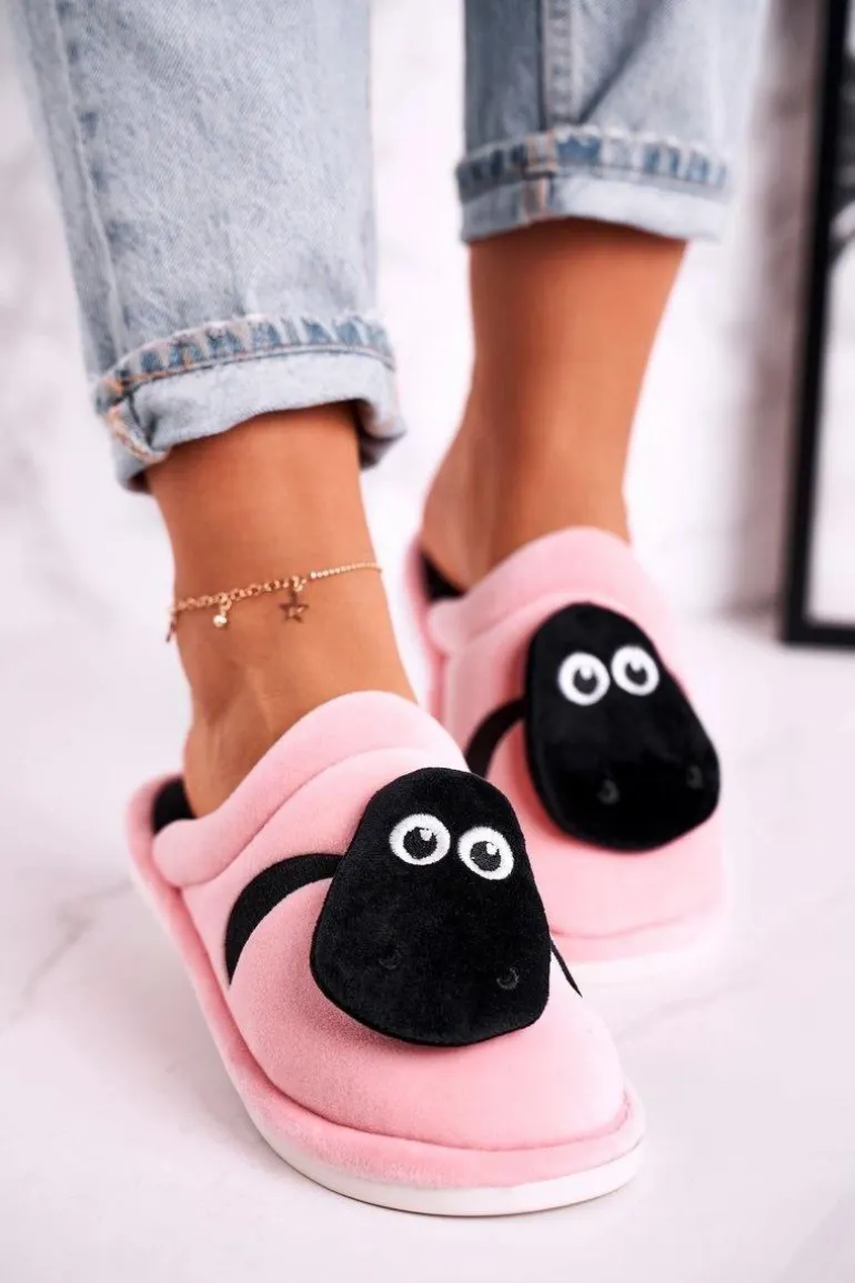 Damskie Welurowe Papcie Z Owieczką Różowe Charlie