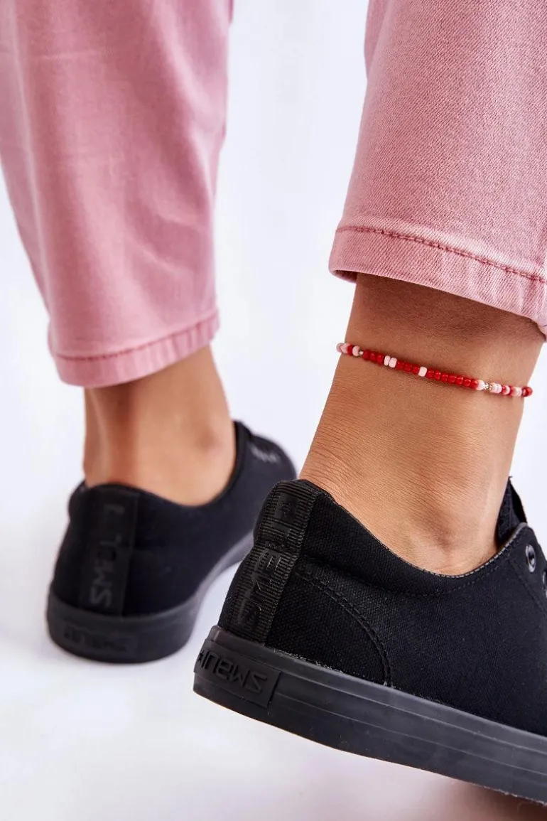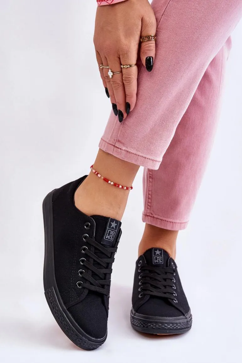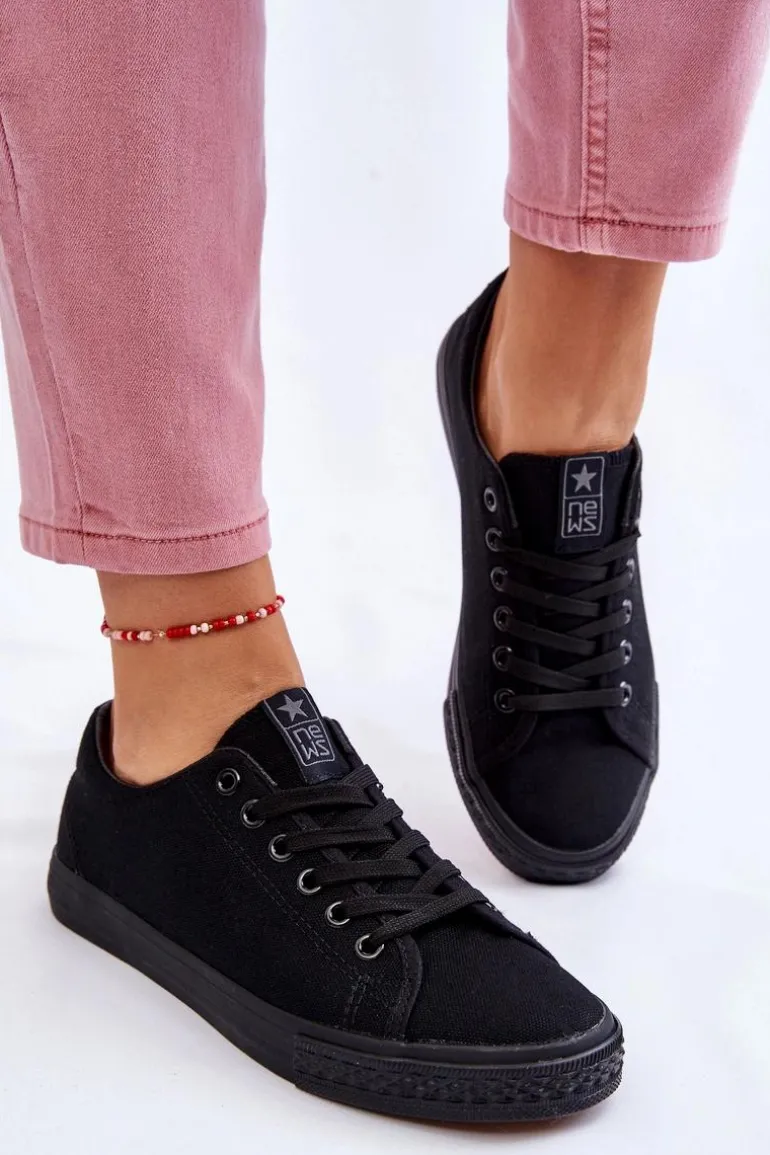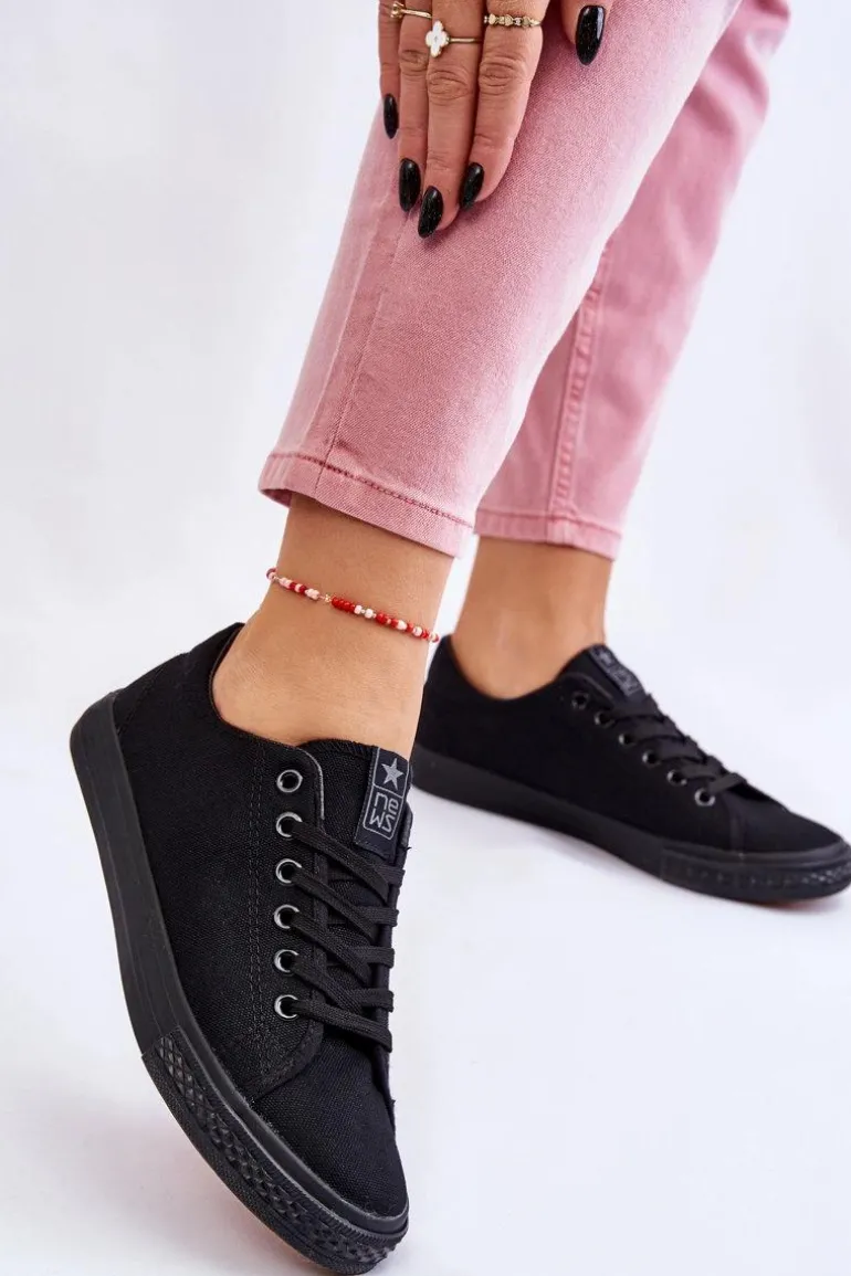 Klasyczne trampki damskie wykonane z materiału tekstylnego z cholewką do kostki. Buty posiadają gumową podeszwę, która jest dodatkowo antypoślizgowa. Ponadczasowy model, który powinnaś mieć w swojej szafie! Nosek zaokrąglony. Wygodna, materiałowa wkładka zapewni komfort podczas użytkowania. Model klasycznie wiązany na płaskie sznurowadła. Przy wyborze rozmiaru prosimy sugerować się tabelą rozmiarów.