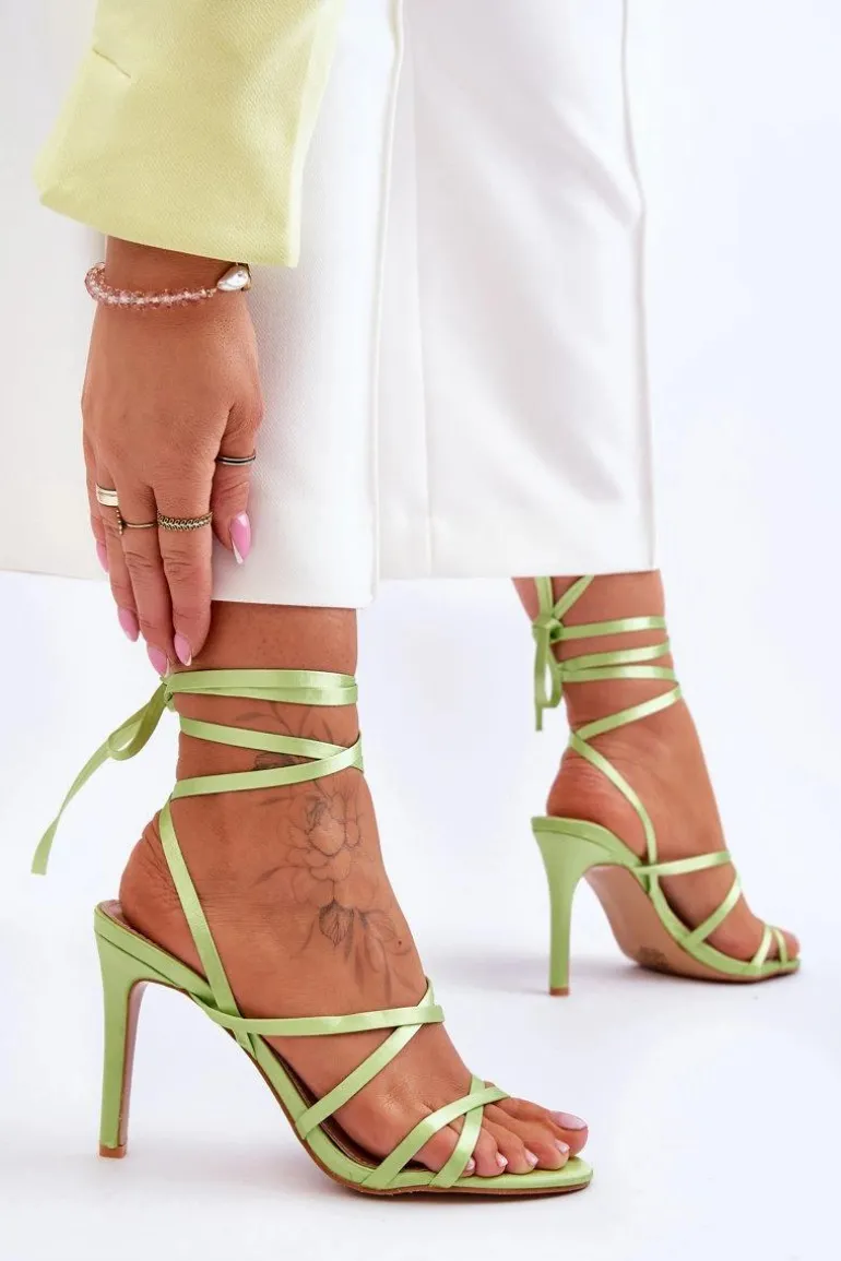 Klasyczne, damskie sandałki zostały wykonane z materiału tekstylnego. Osadzone na obcasie w postaci szpilki. Sandałki posiadają miękką, eko skórzaną wkładkę. Idealne na upalne dni, dzięki przewiewnemu fasonowi. Sandałki posiadają odkryty, lekko zaokrąglony nosek. Model ten jest wiązany wokół łydki. Przy wyborze rozmiaru prosimy sugerować się tabelą rozmiarów.