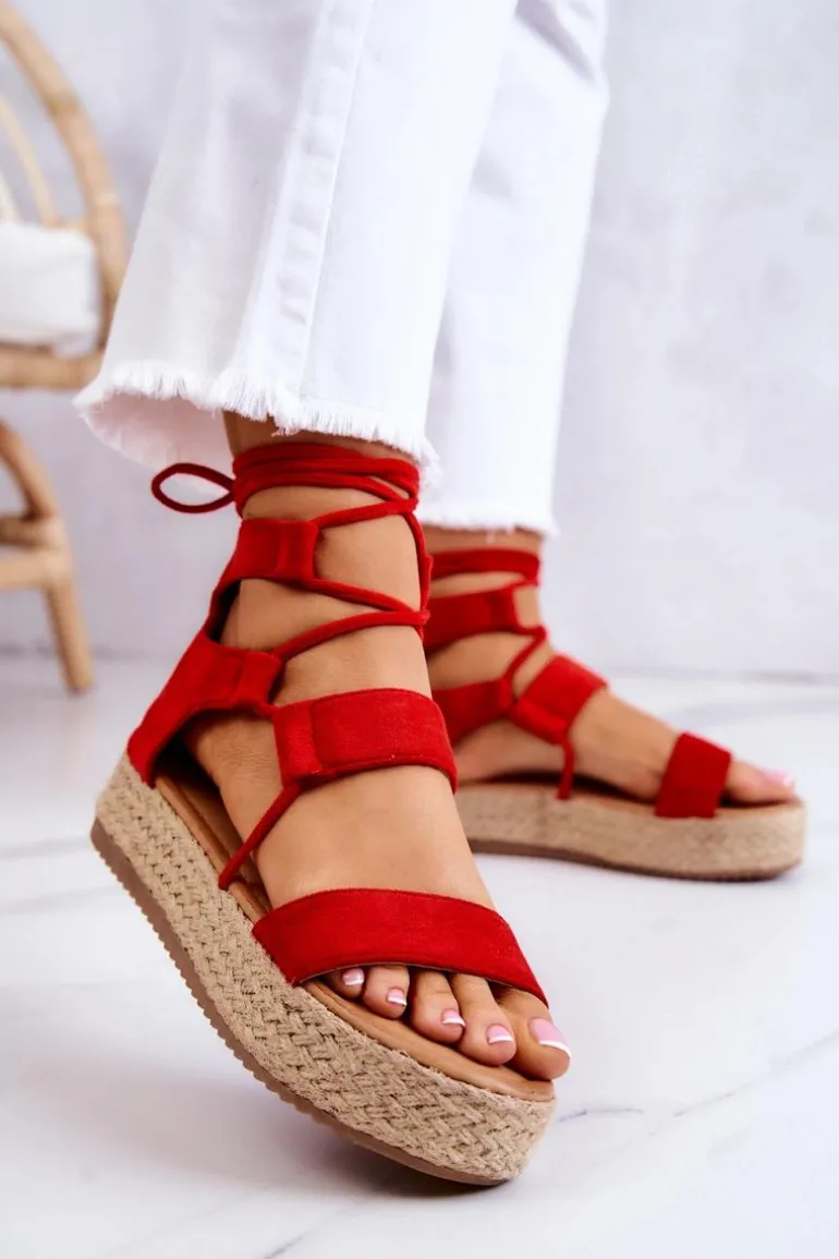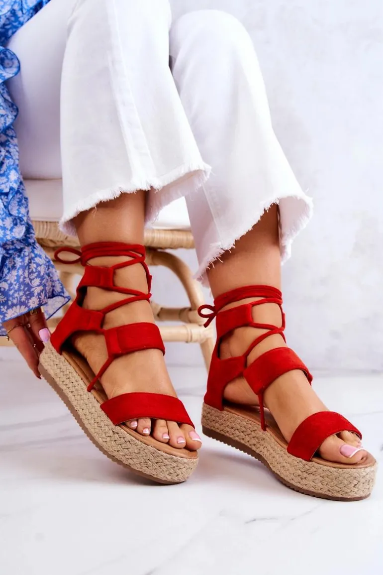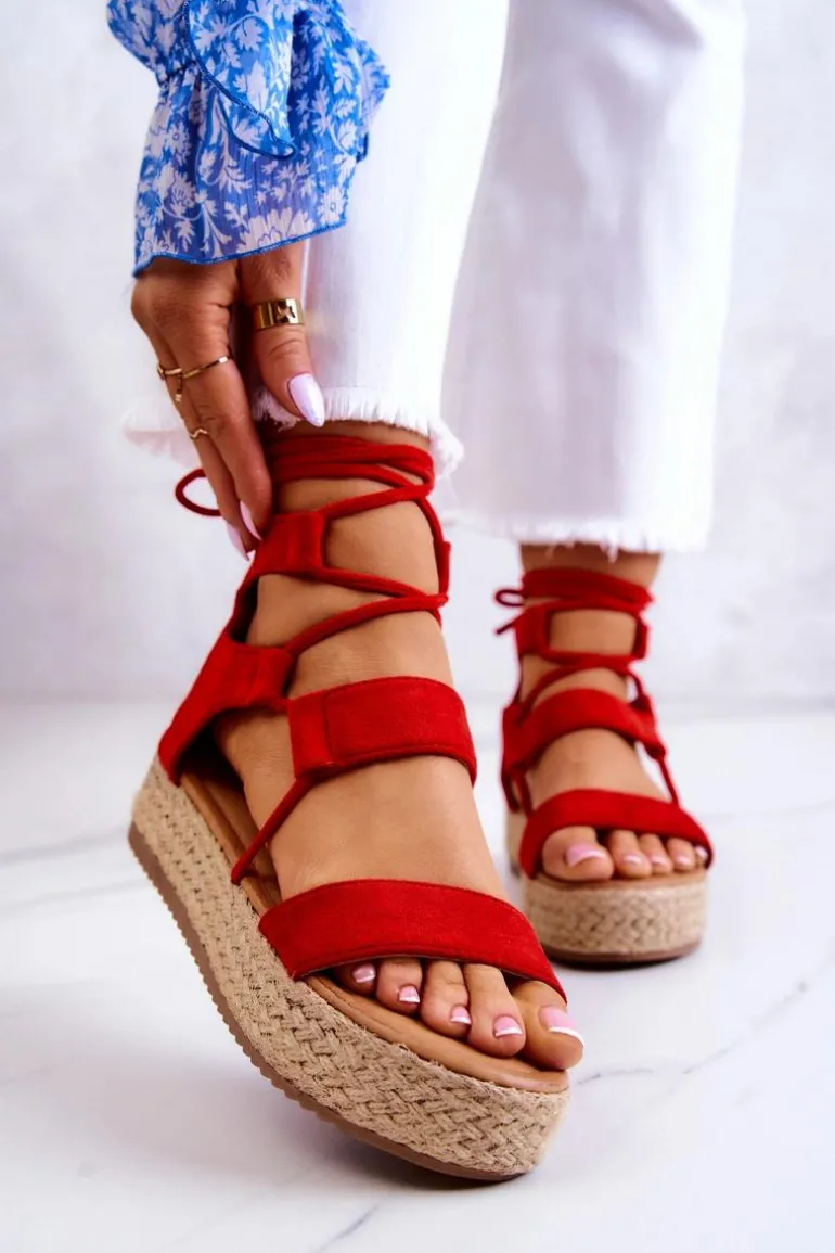 Świetne, wiązane sandały w stylu espadryli. Posiadają cholewkę za kostkę wykonaną z eko zamszu. Można je odpowiednio dopasować do tęgości nogi. Platforma jest ozdobiona jutową plecionką, natomiast podeszwa została wykonana z gumowego tworzywa i jest antypoślizgowa. Miękka wkładka wykonana z eko skóry zapewni wygodę podczas użytkowania. Idealne do pracy, na spotkanie ze znajomymi czy weekendowy wyjazd. Model, który sprawi, że Twoje stylizacje będą wyglądać niesamowicie! Przy wyborze rozmiaru prosimy sugerować się tabelą rozmiarów.