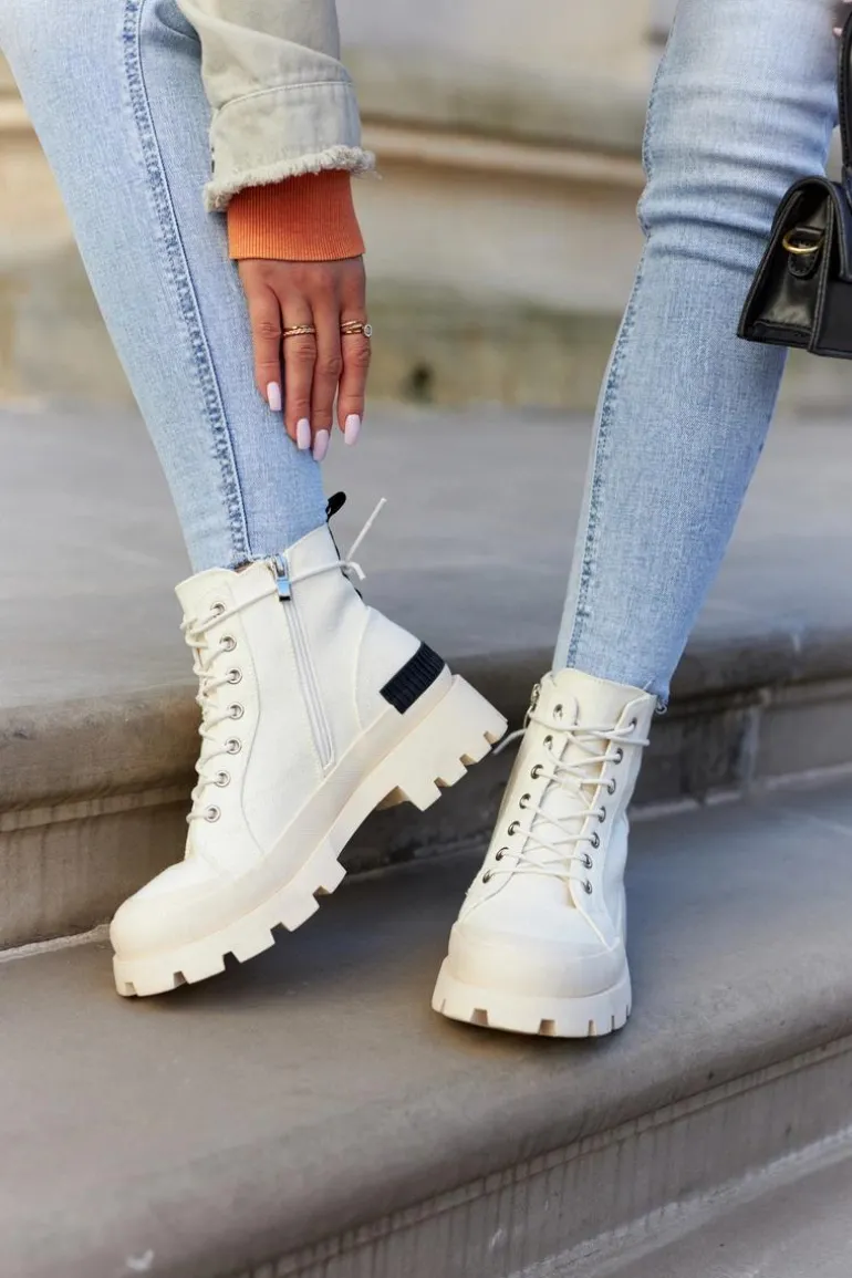 Idealne połączenie trampek i traperów w jednym! Cholewka wykonana z materiału tekstylnego. Wkładka wykonana z wysokiej jakości eko skóry. O idealne dopasowanie zadba solidne sznurowanie oraz wszyty z boku cholewki suwak. Trapery posiadają wzmocniony gumowy nosek, dzięki czemu są bardziej odporne na uszkodzenia mechaniczne. Zapiętek dodatkowo usztywniany. Koniecznie sprawdź całą naszą kolekcję botków. Przy wyborze rozmiaru prosimy sugerować się tabelą rozmiarów.