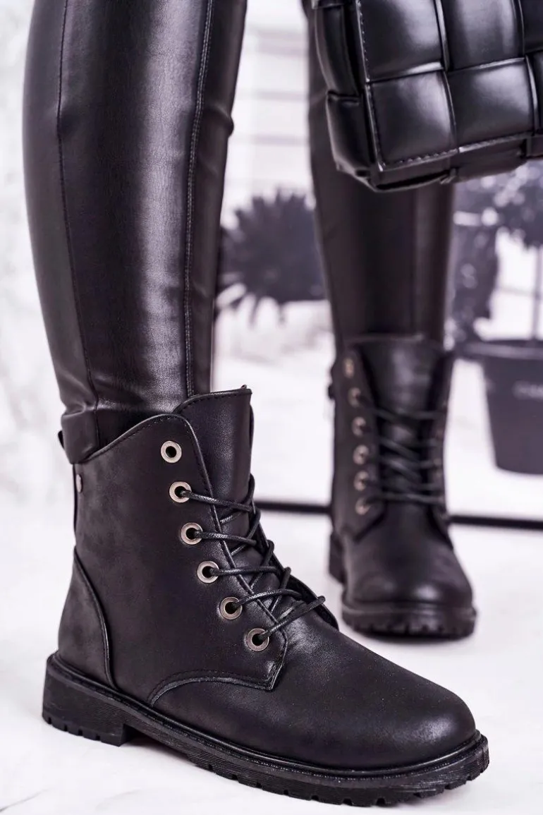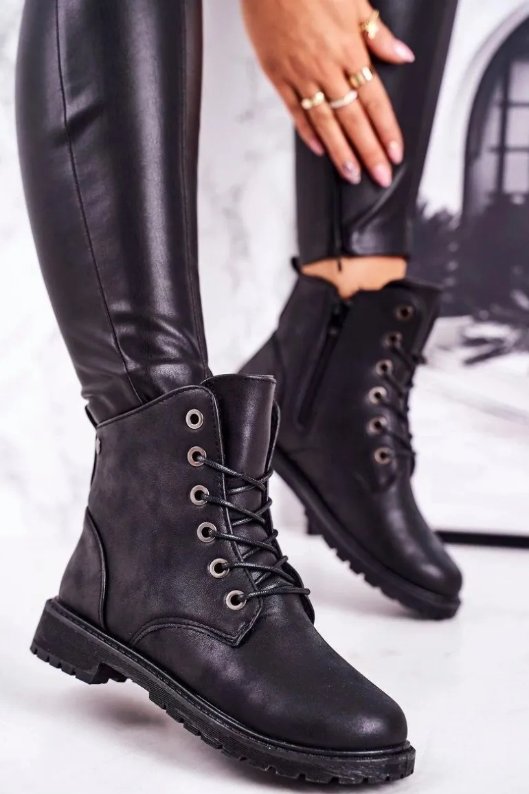 Damskie Workery Botki Ocieplane Futerkiem Czarne Mia