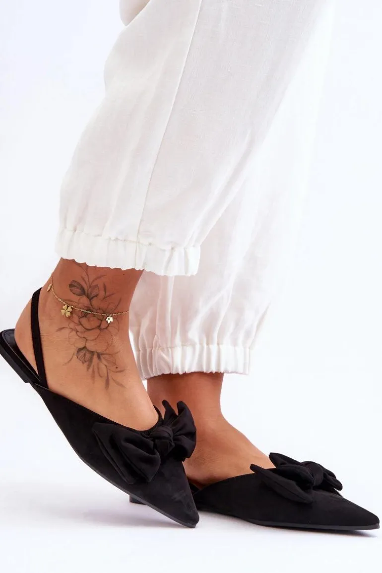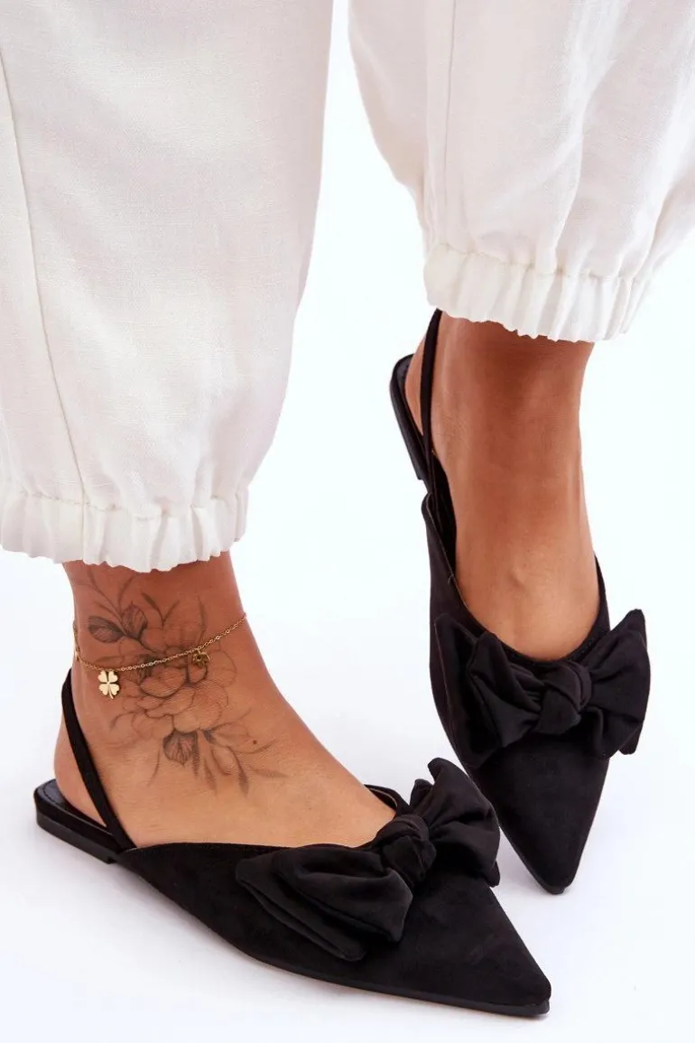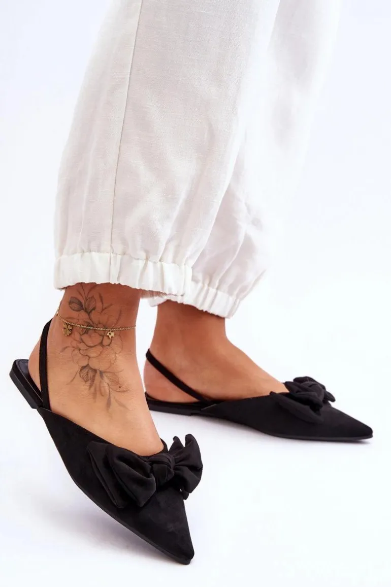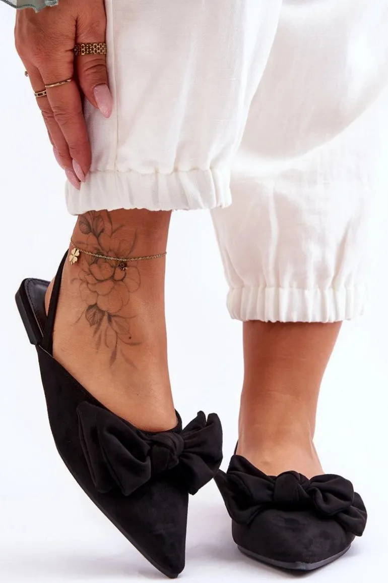 Damskie Wsuwane Baleriny Z Kokardą Czarne Nadine
