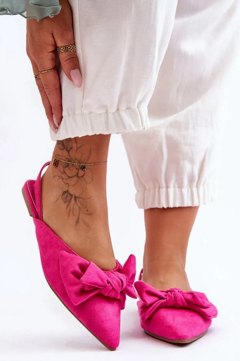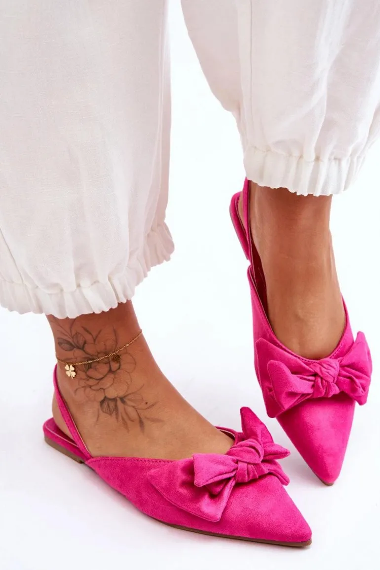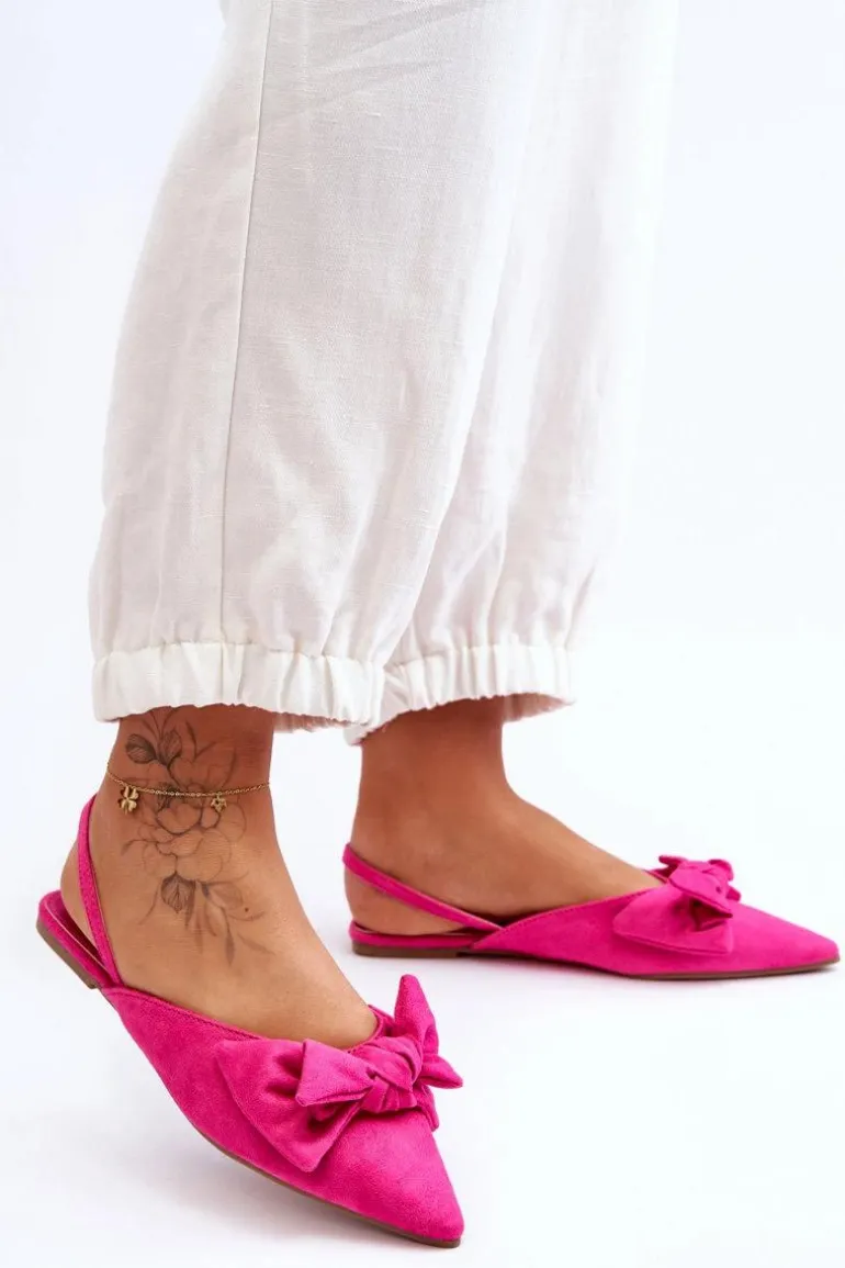 Damskie Wsuwane Baleriny Z Kokardą Fuksja Nadine