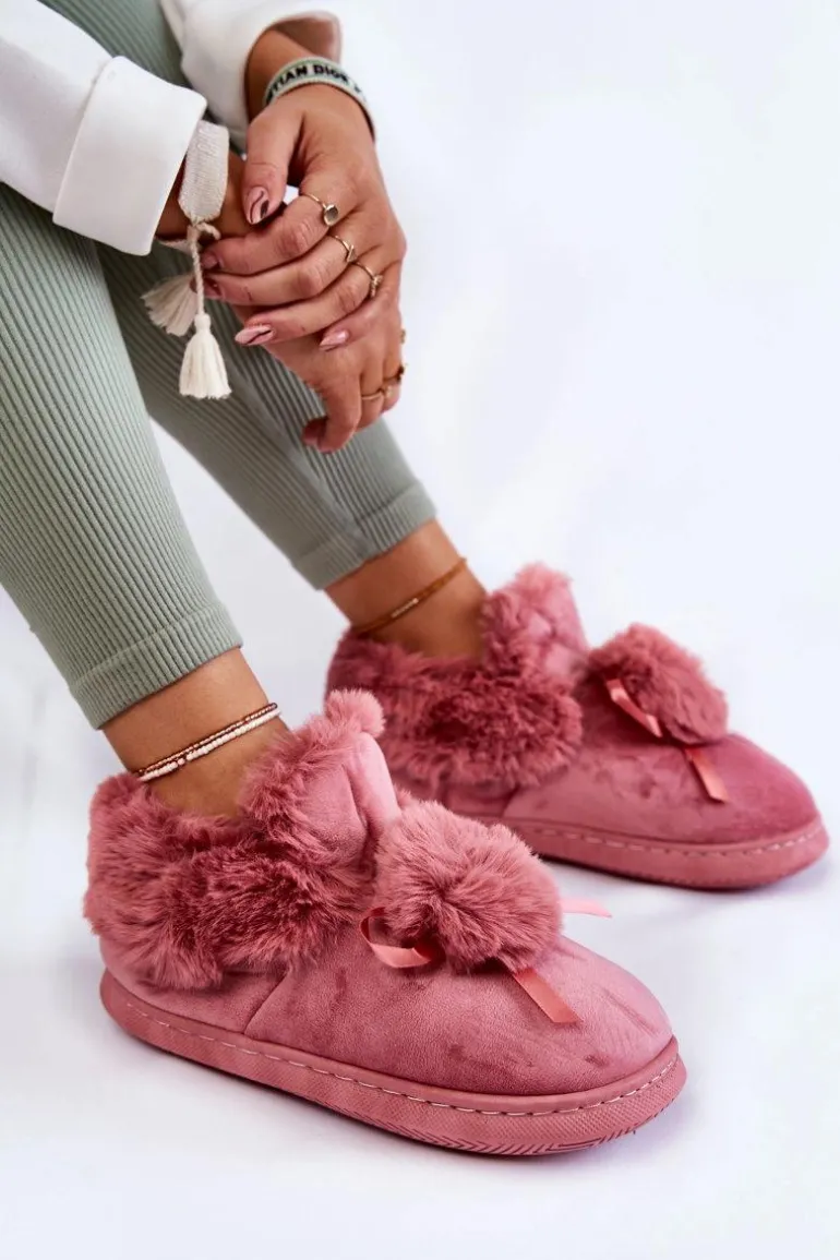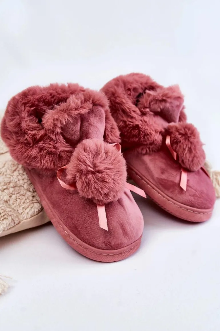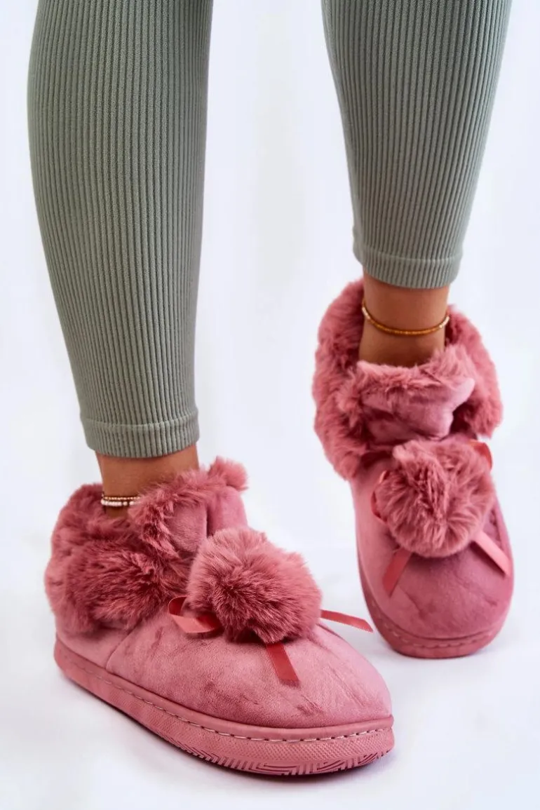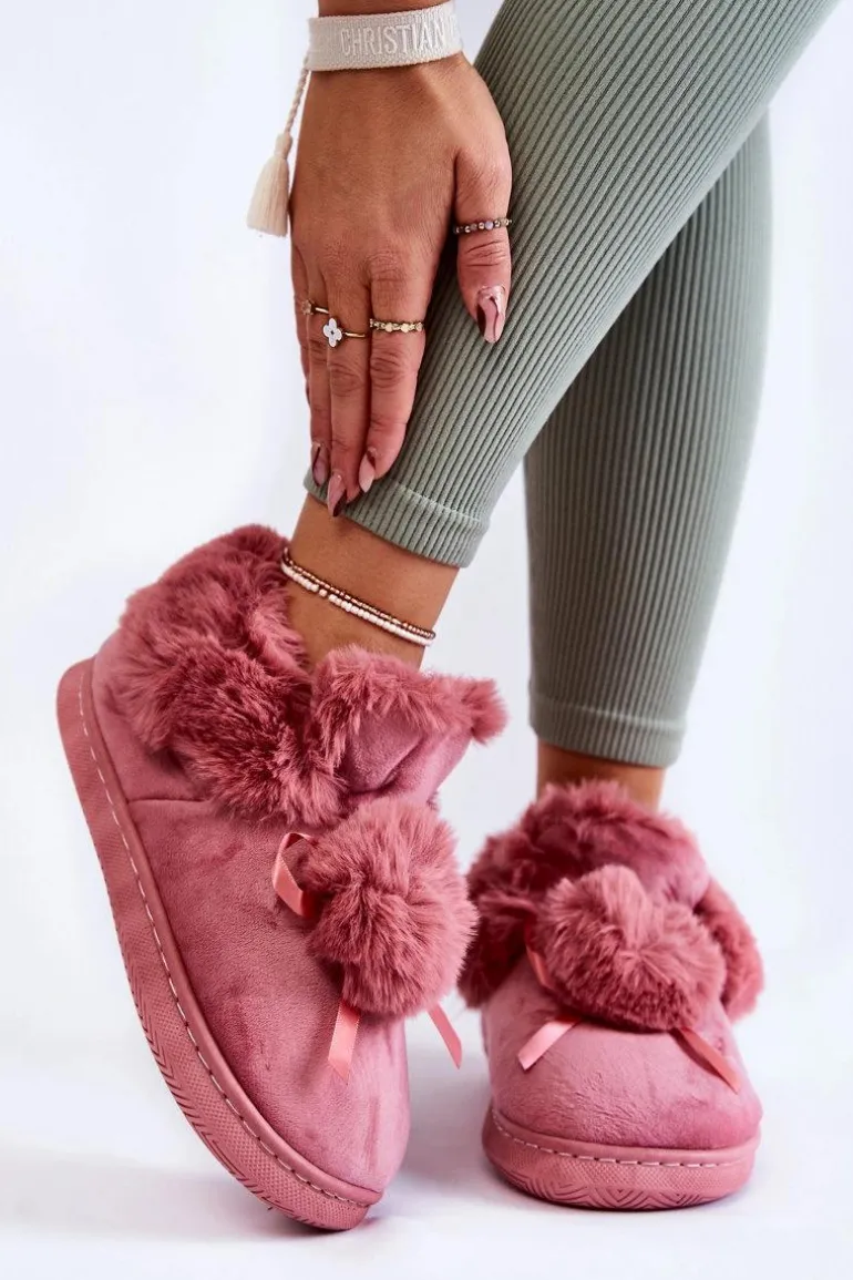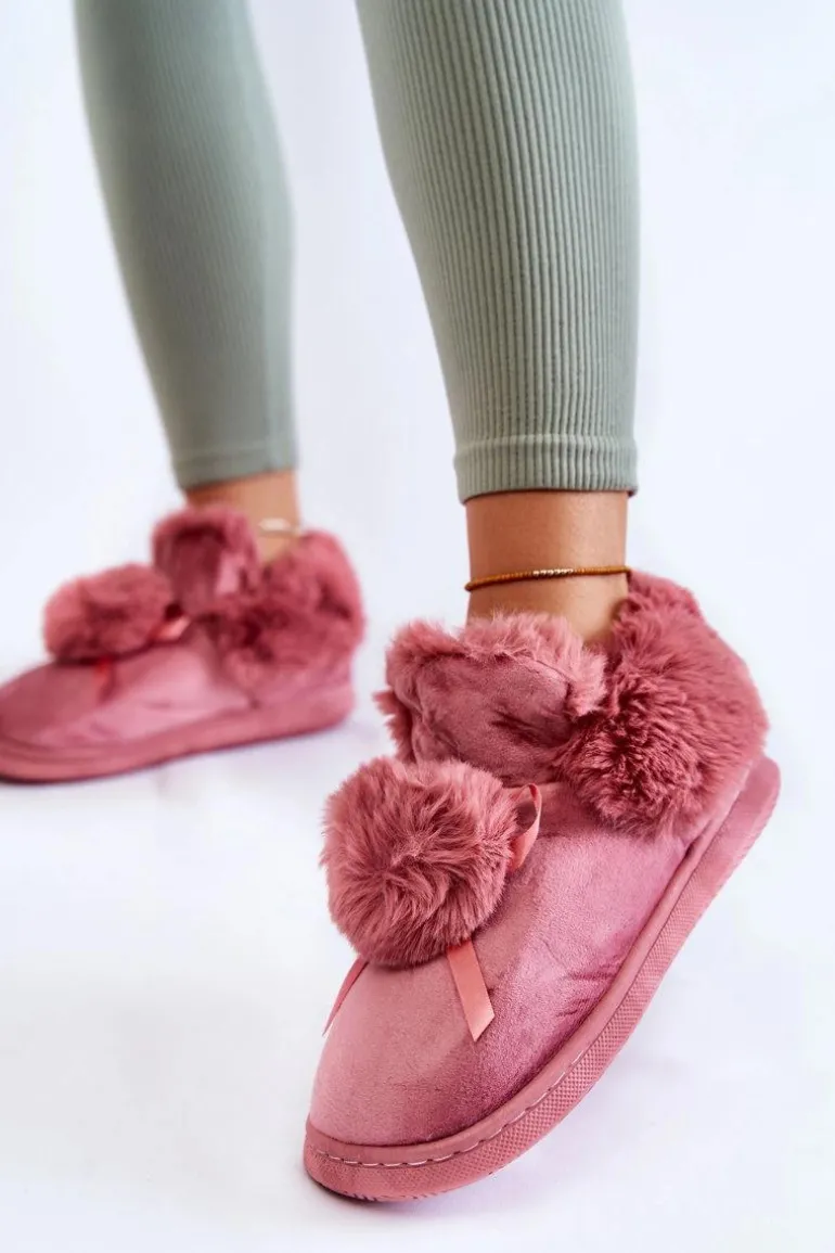 Damskie Wsuwane Futrzane Papcie Z Pomponem Różowe Noemi